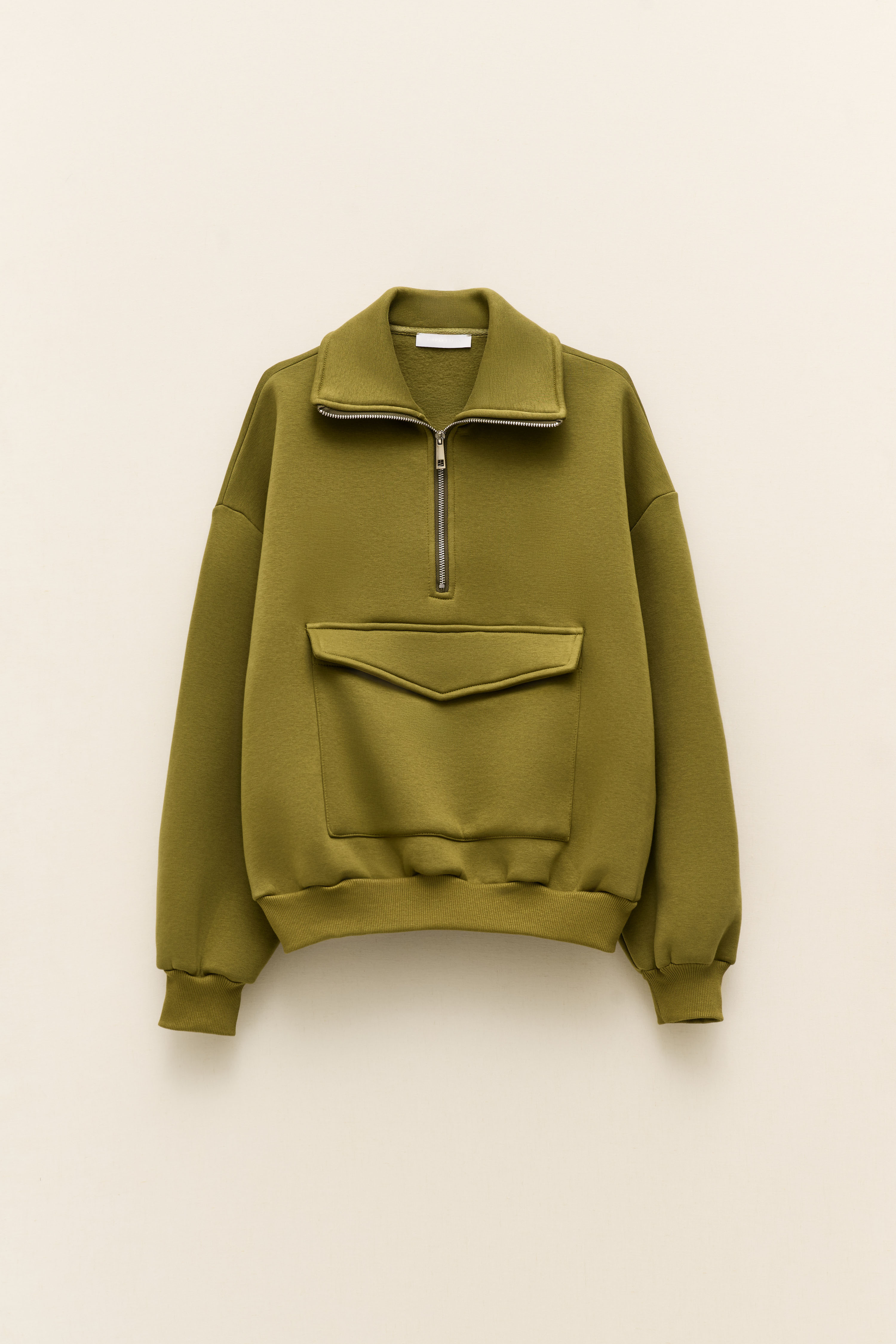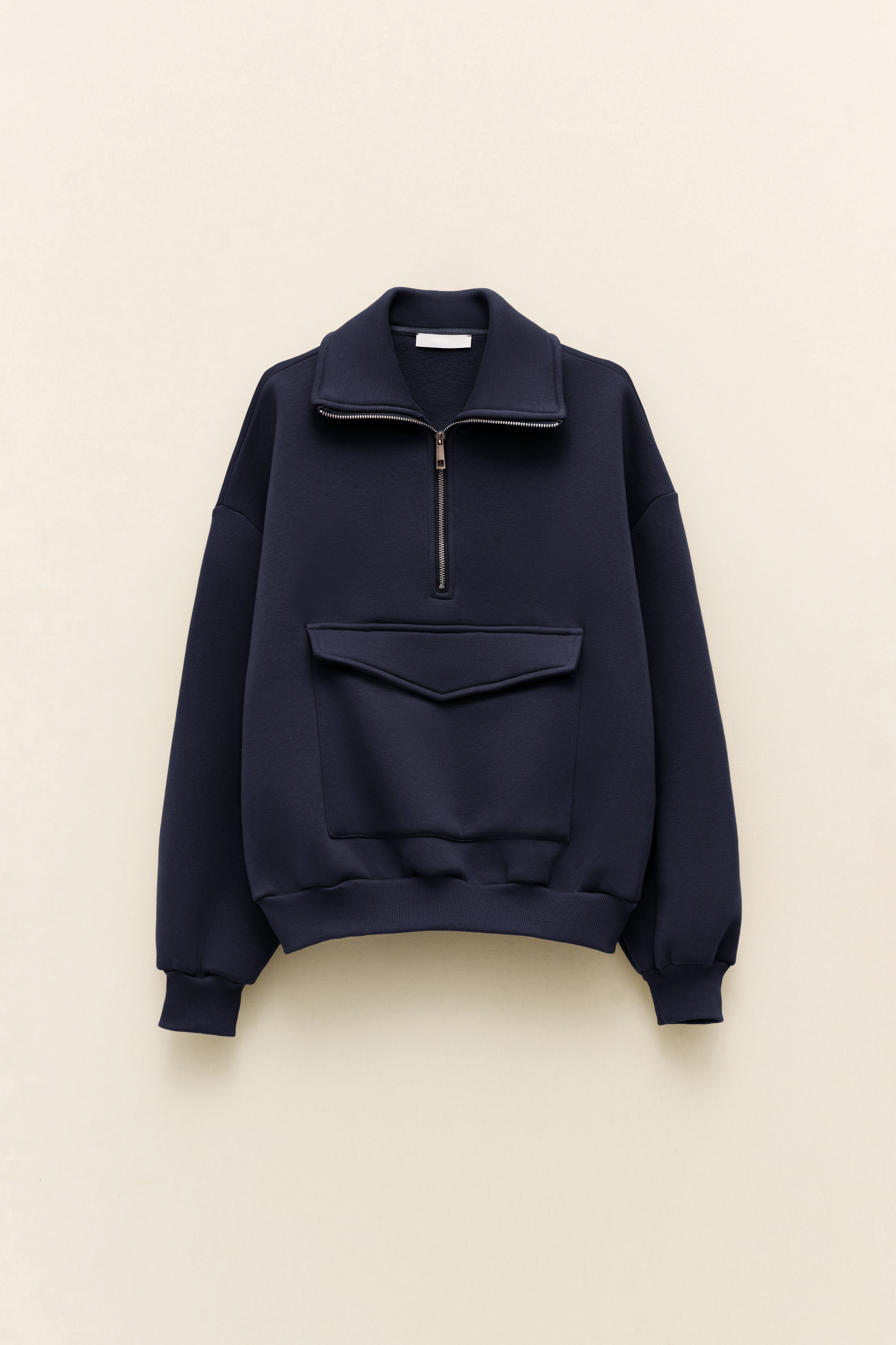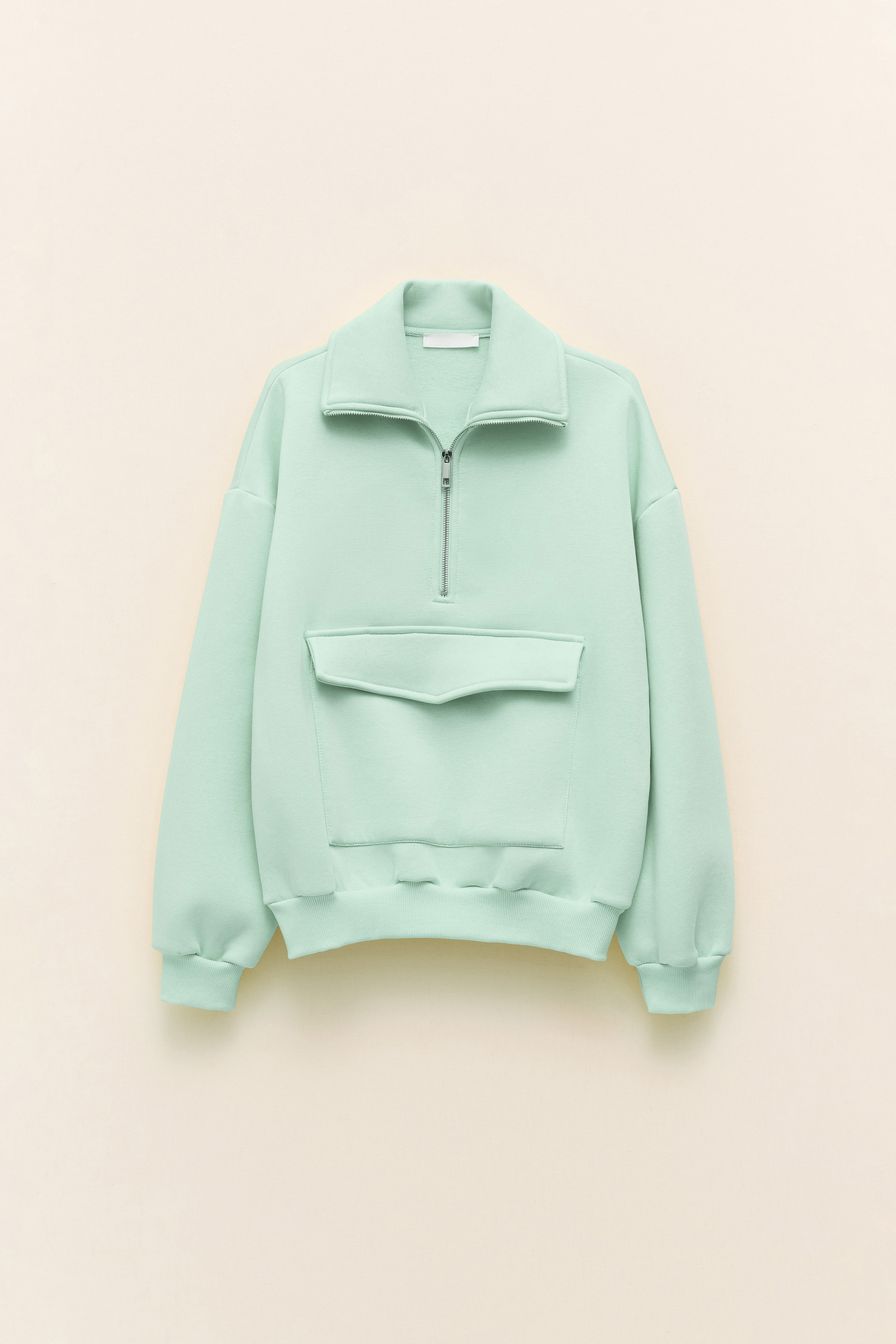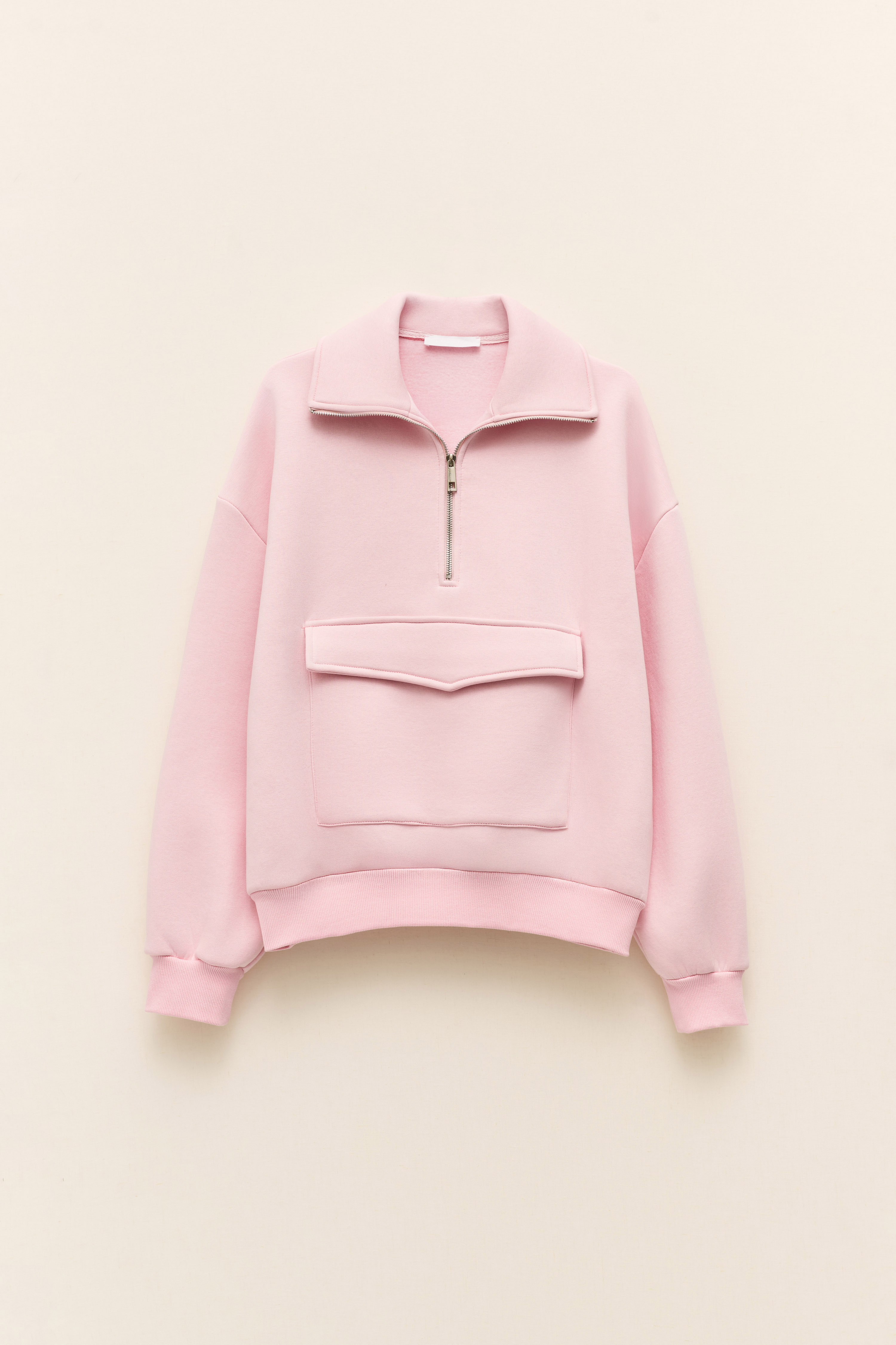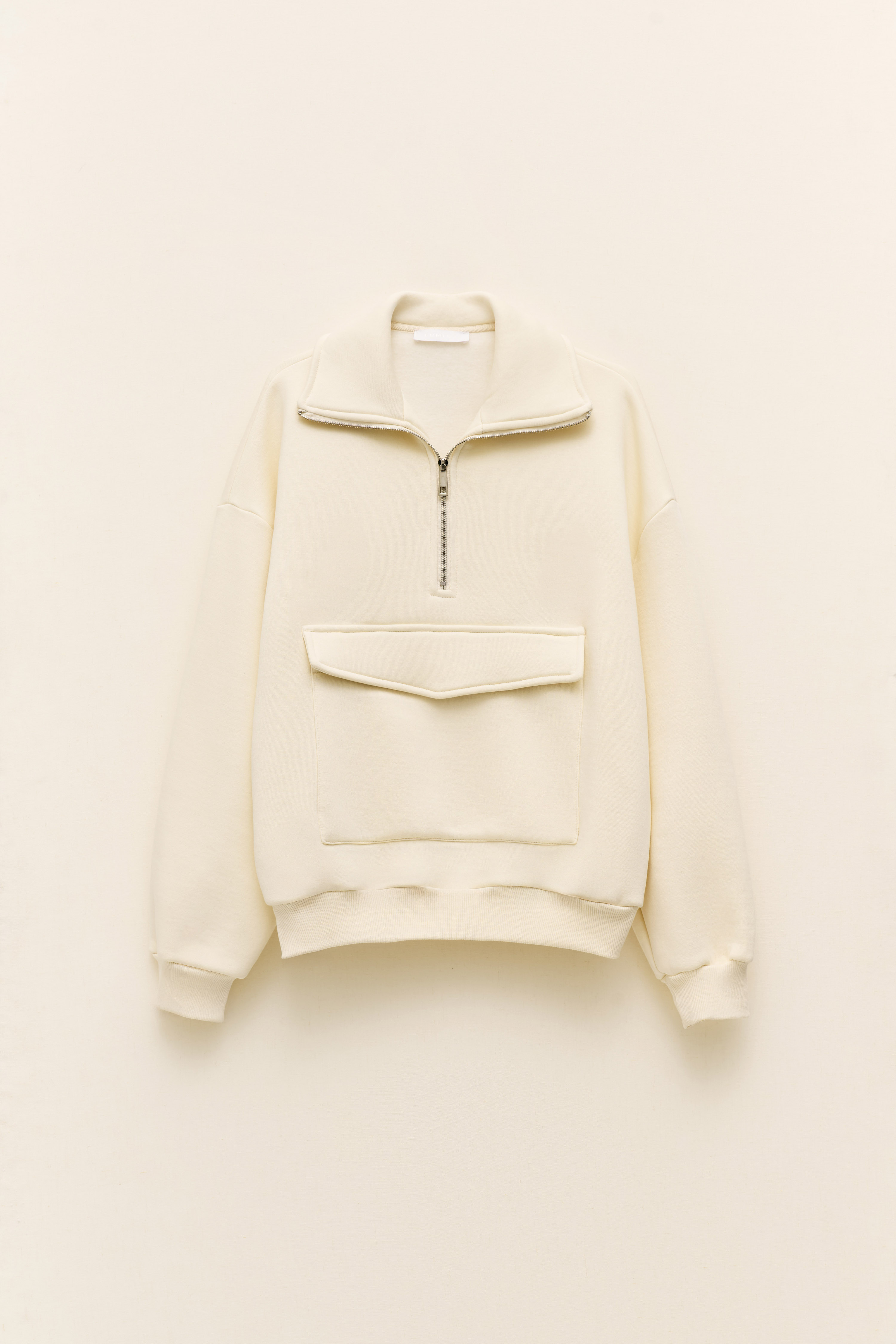 Zip on the neck and large pockets on the front.