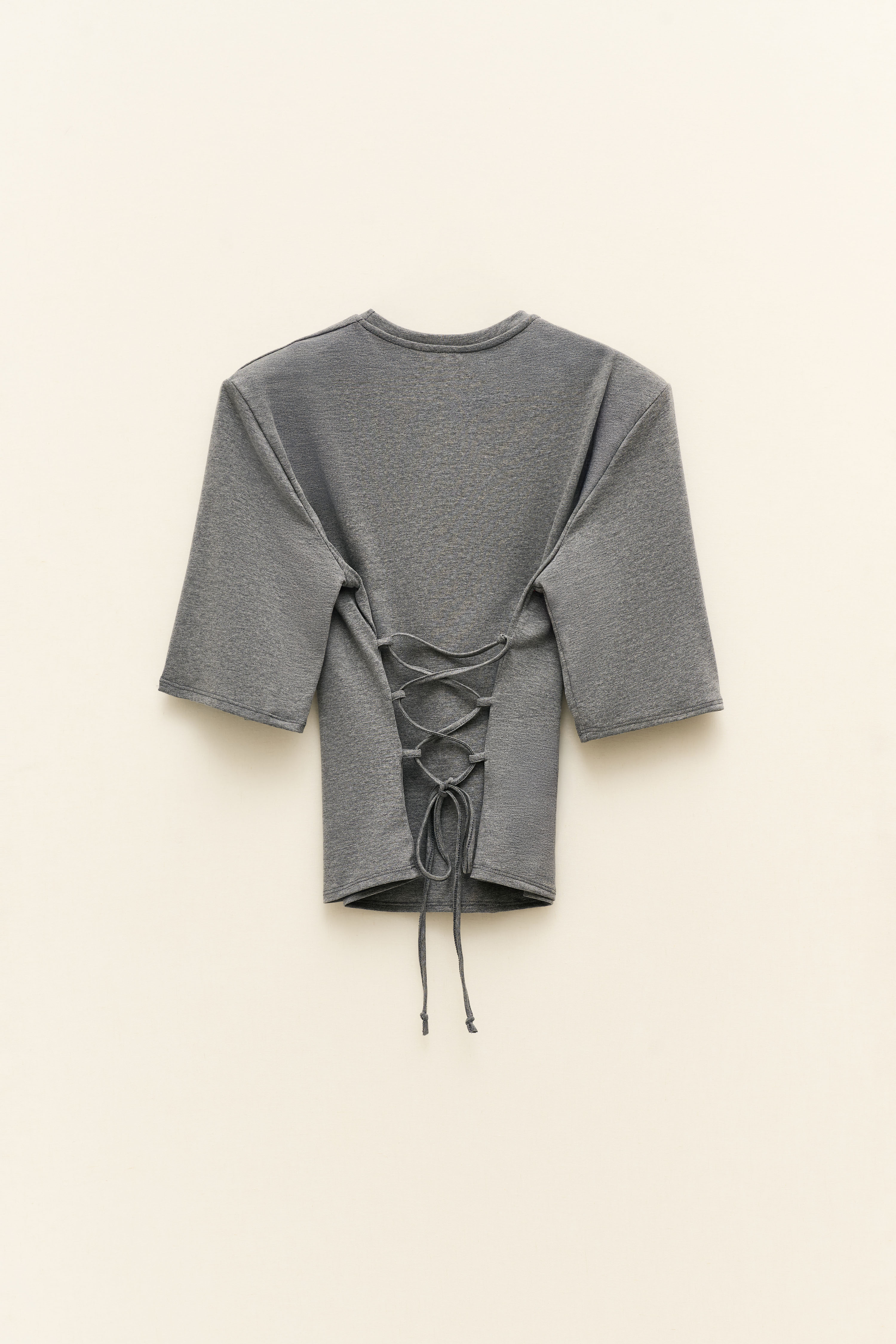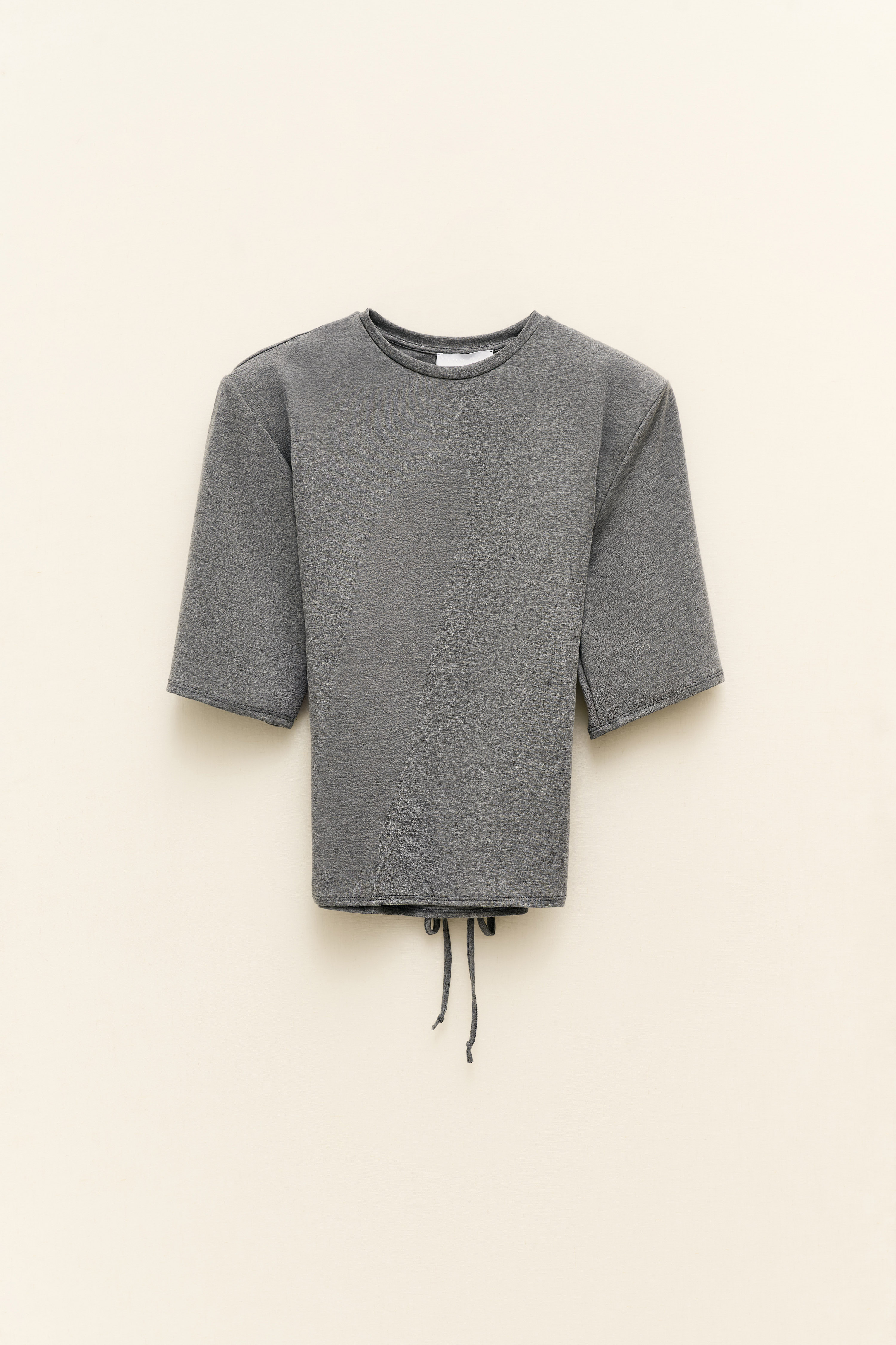 short sleeves. Features padded shoulders.