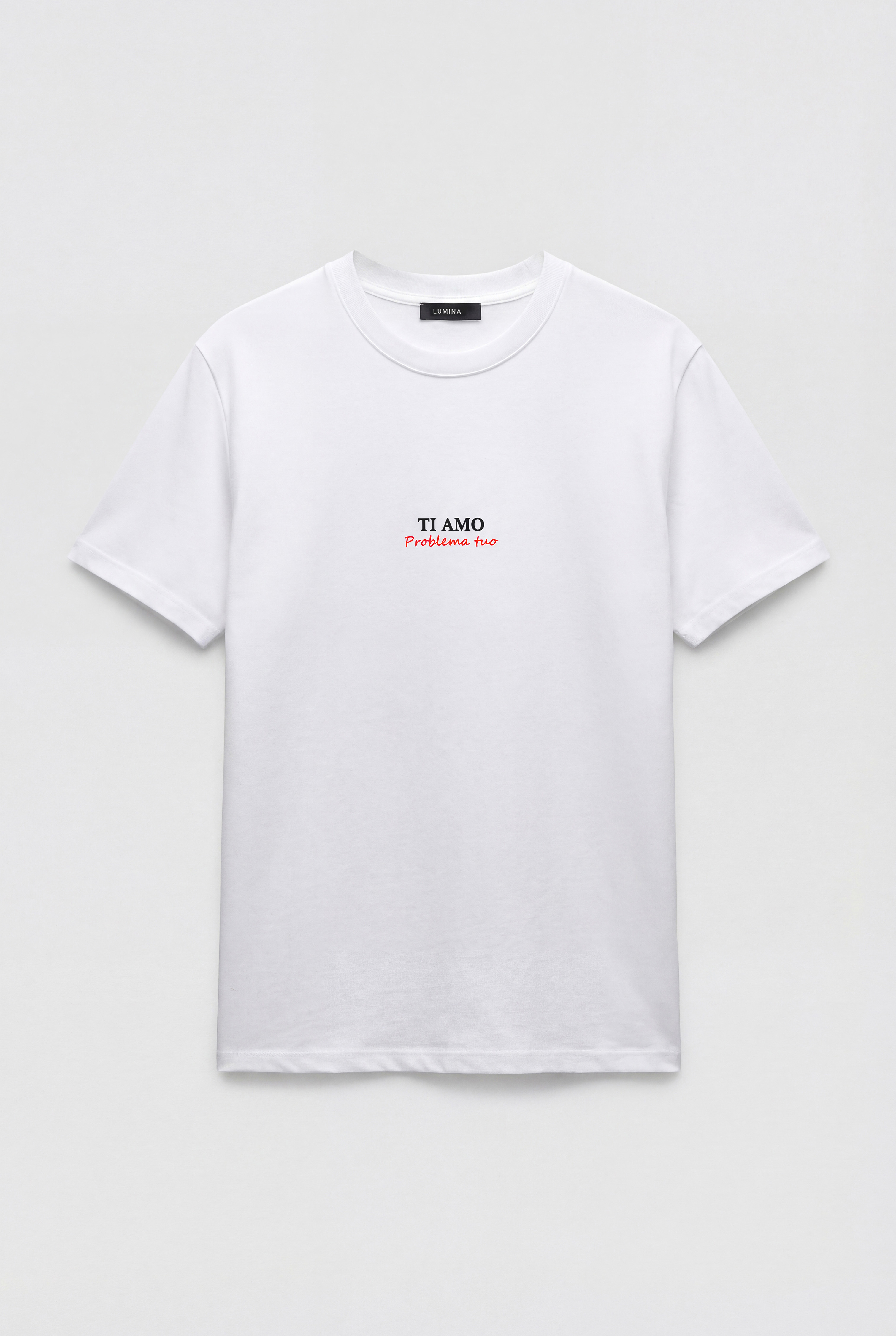 Crew neck, short-sleeved cotton T-shirt.