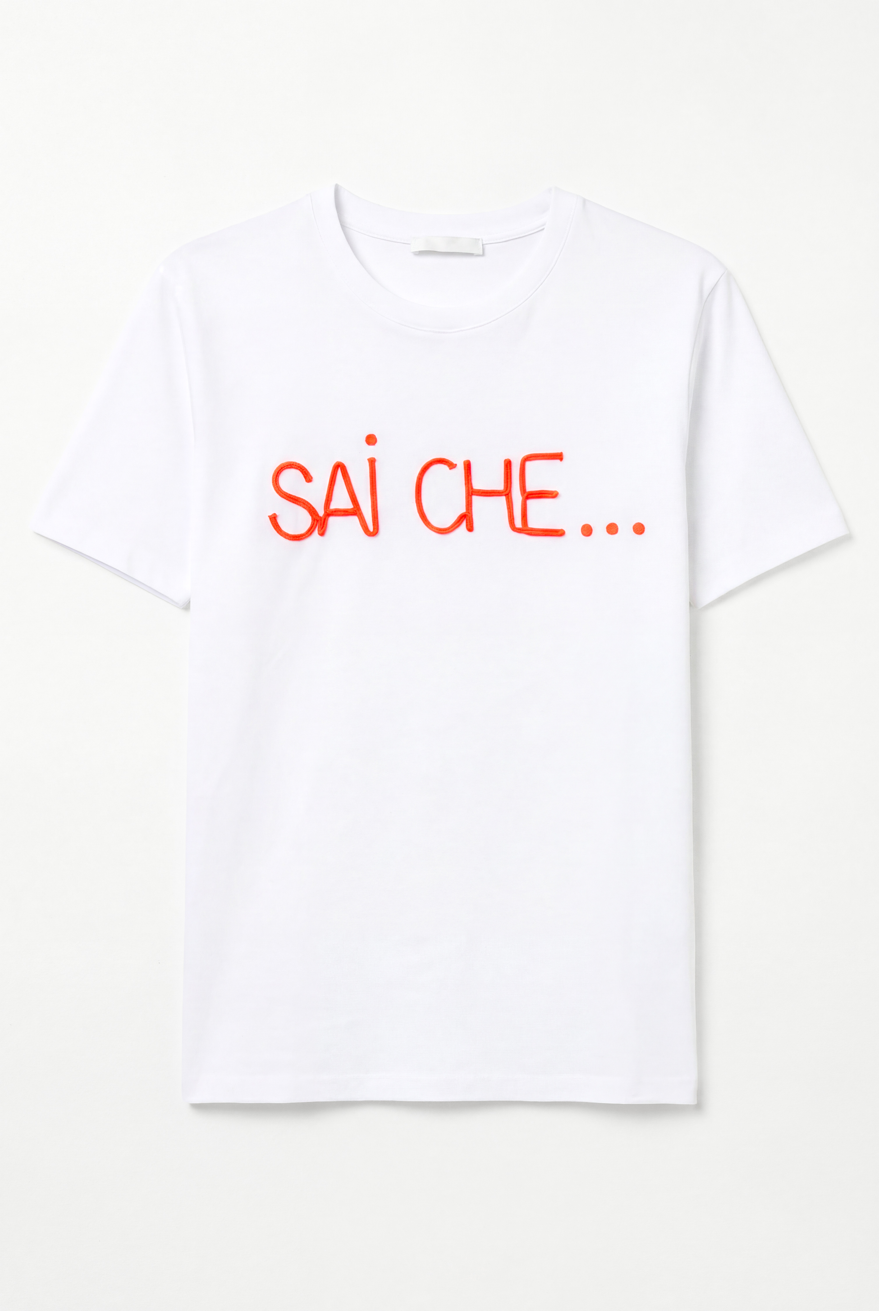 Crew neck, short-sleeved cotton T-shirt.