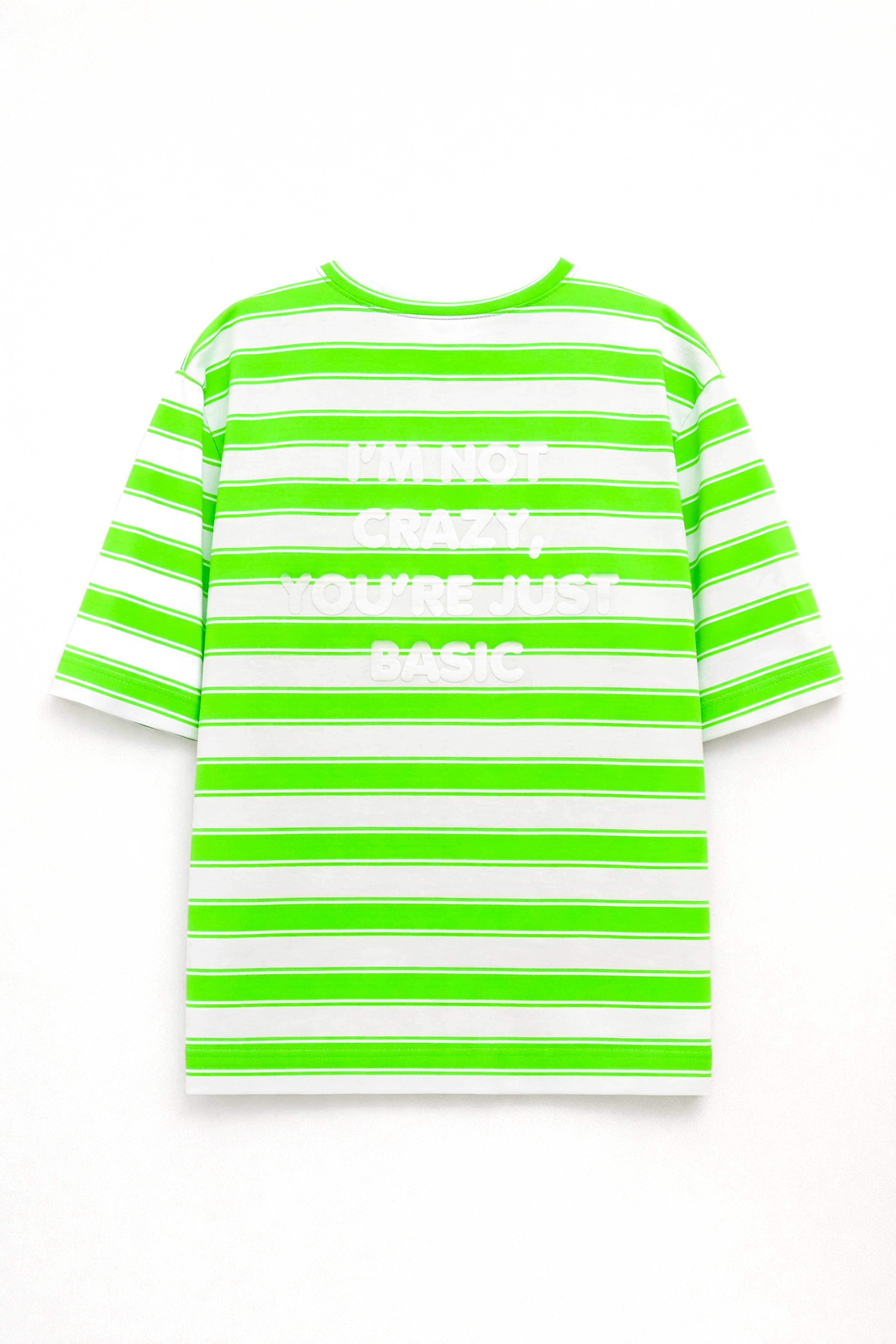 Crew neck, short-sleeved cotton T-shirt with print on the front.