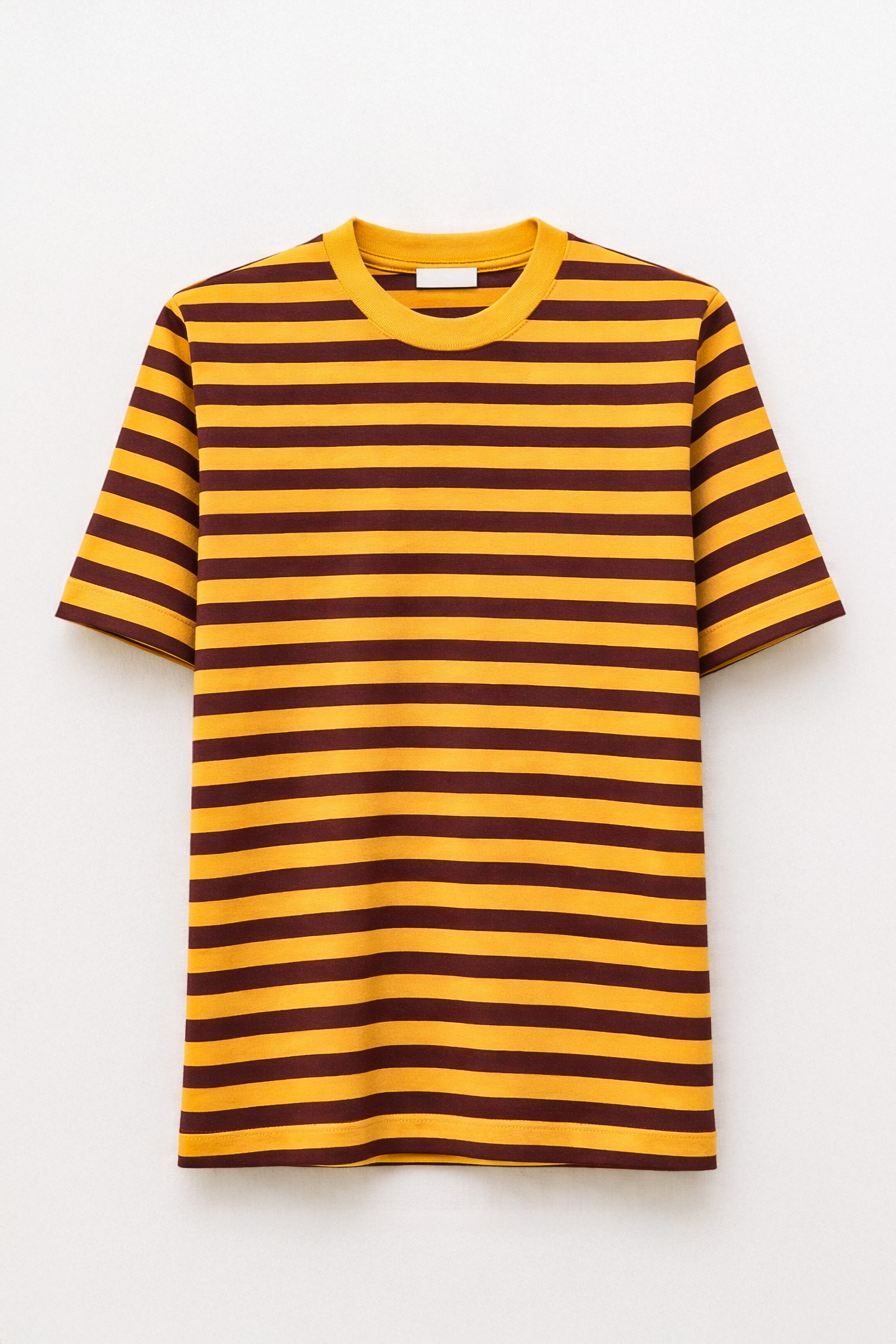 Crew neck, short-sleeved cotton T-shirt.