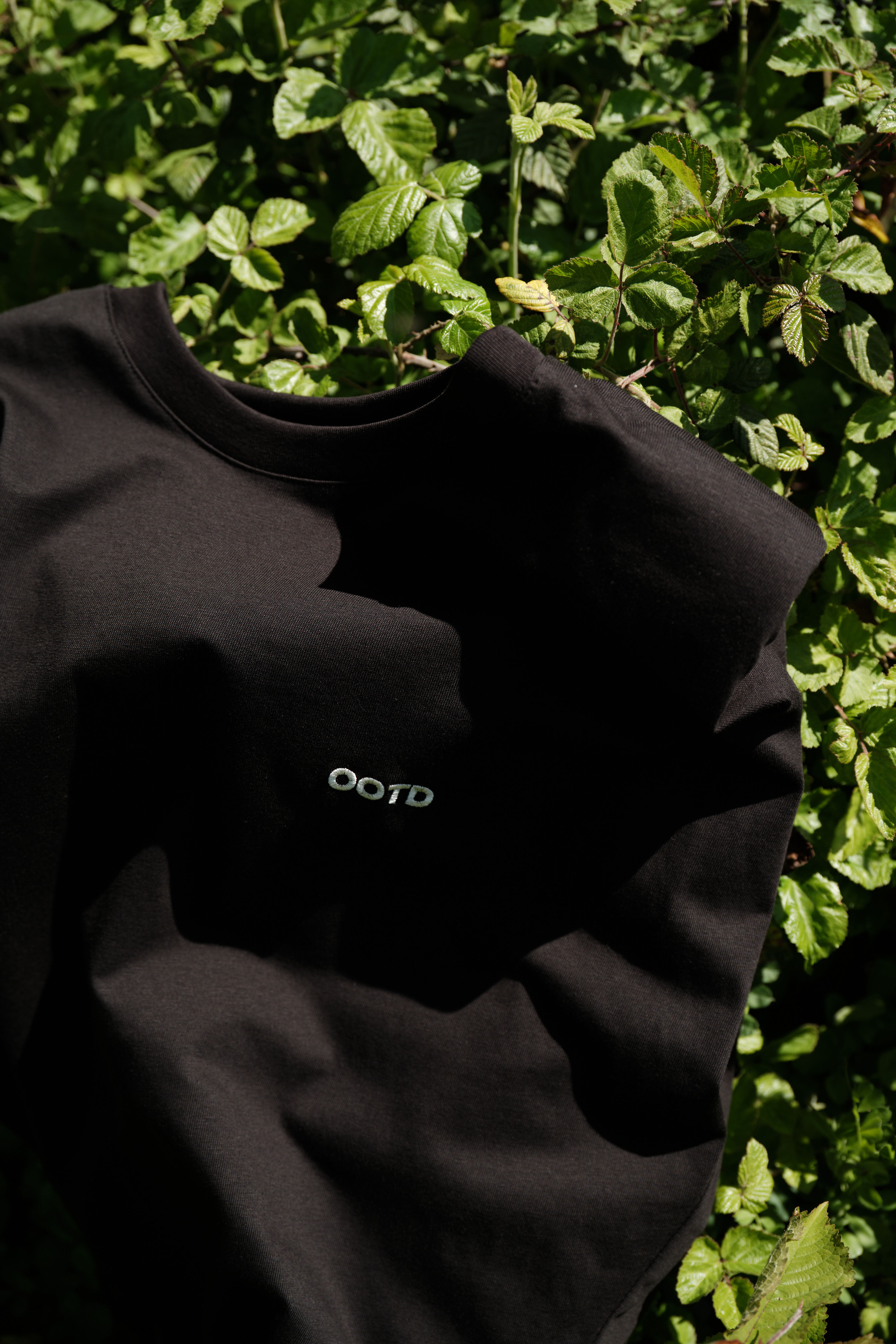 Crew neck, short-sleeved cotton T-shirt with print on the front.