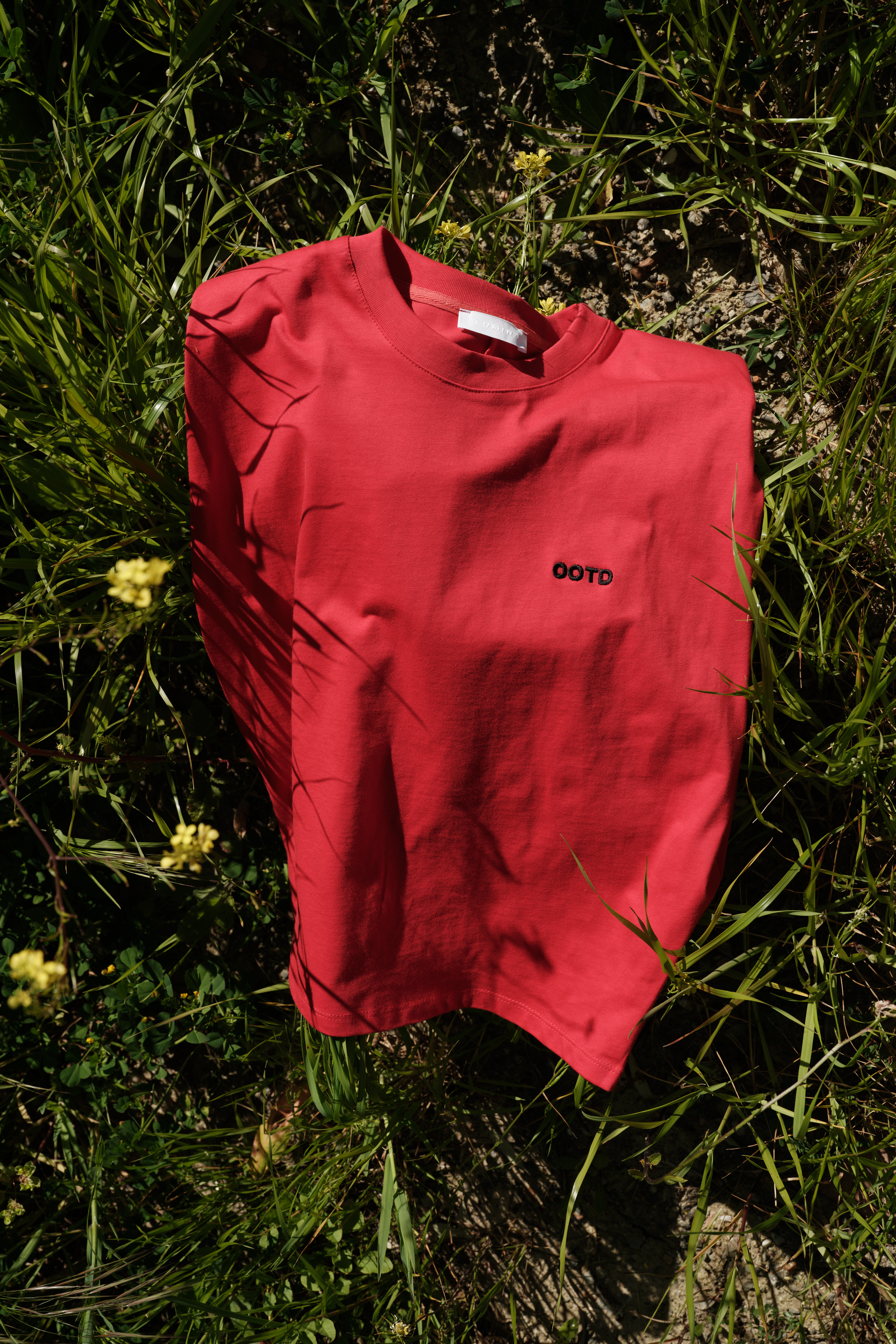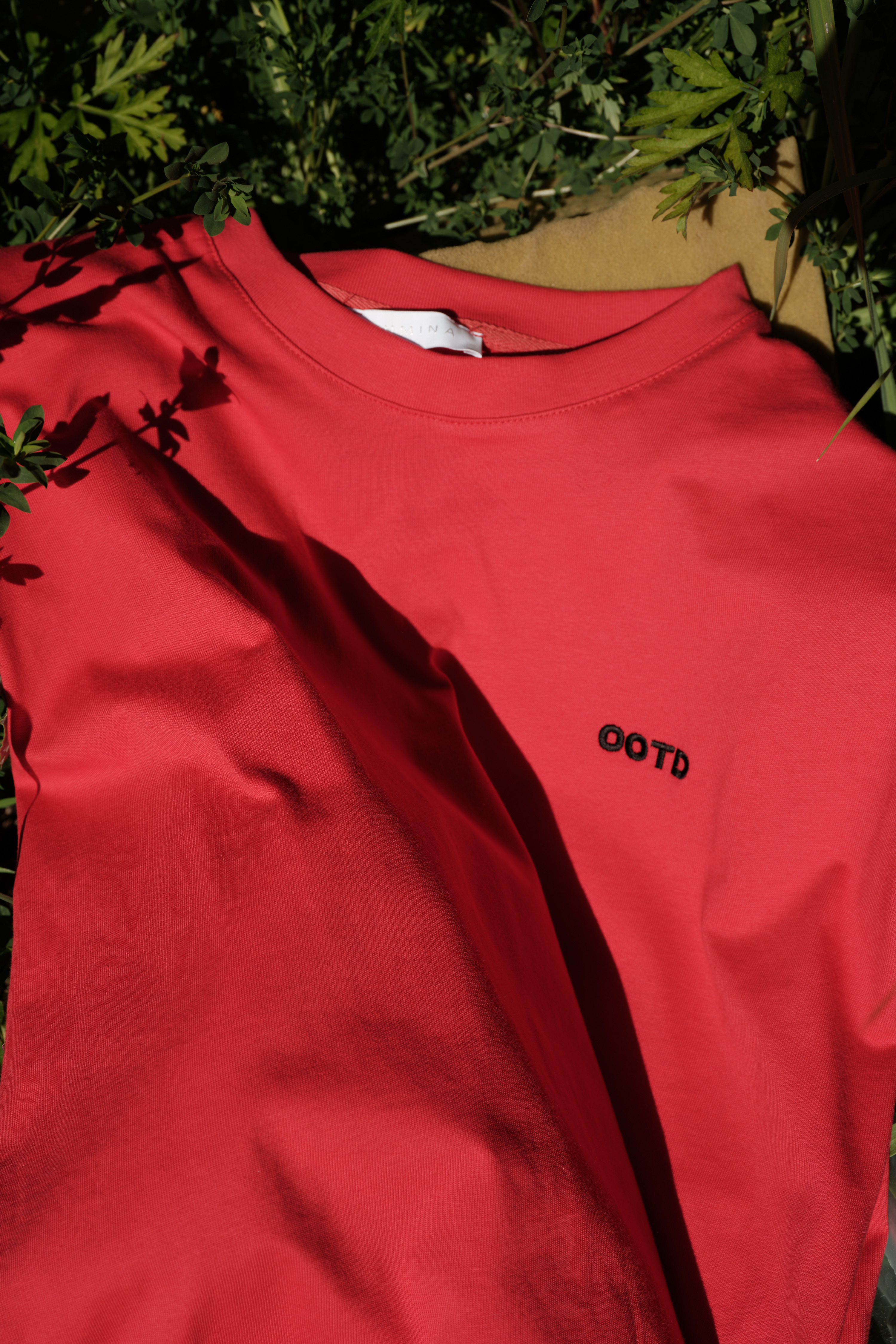 Crew neck, short-sleeved cotton T-shirt with print on the front.