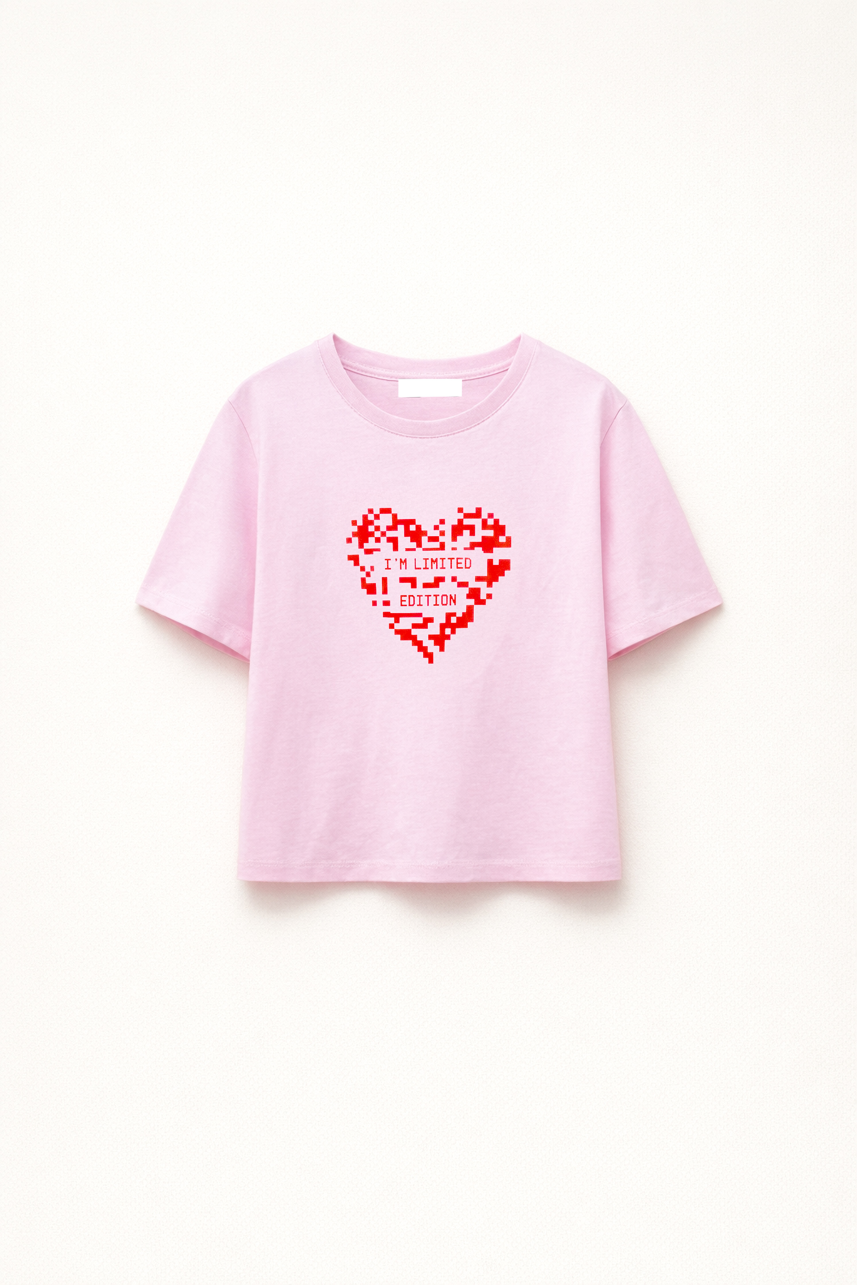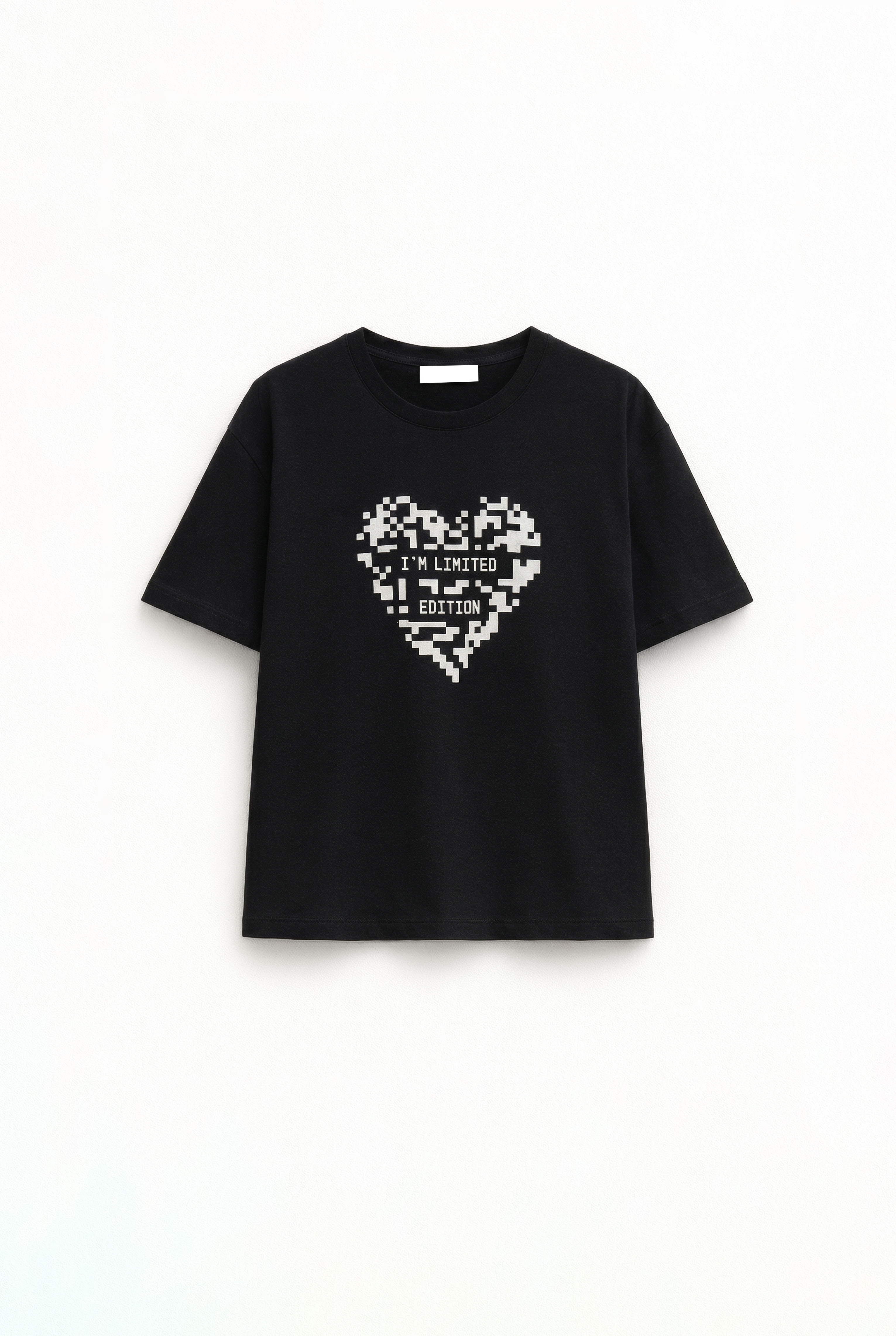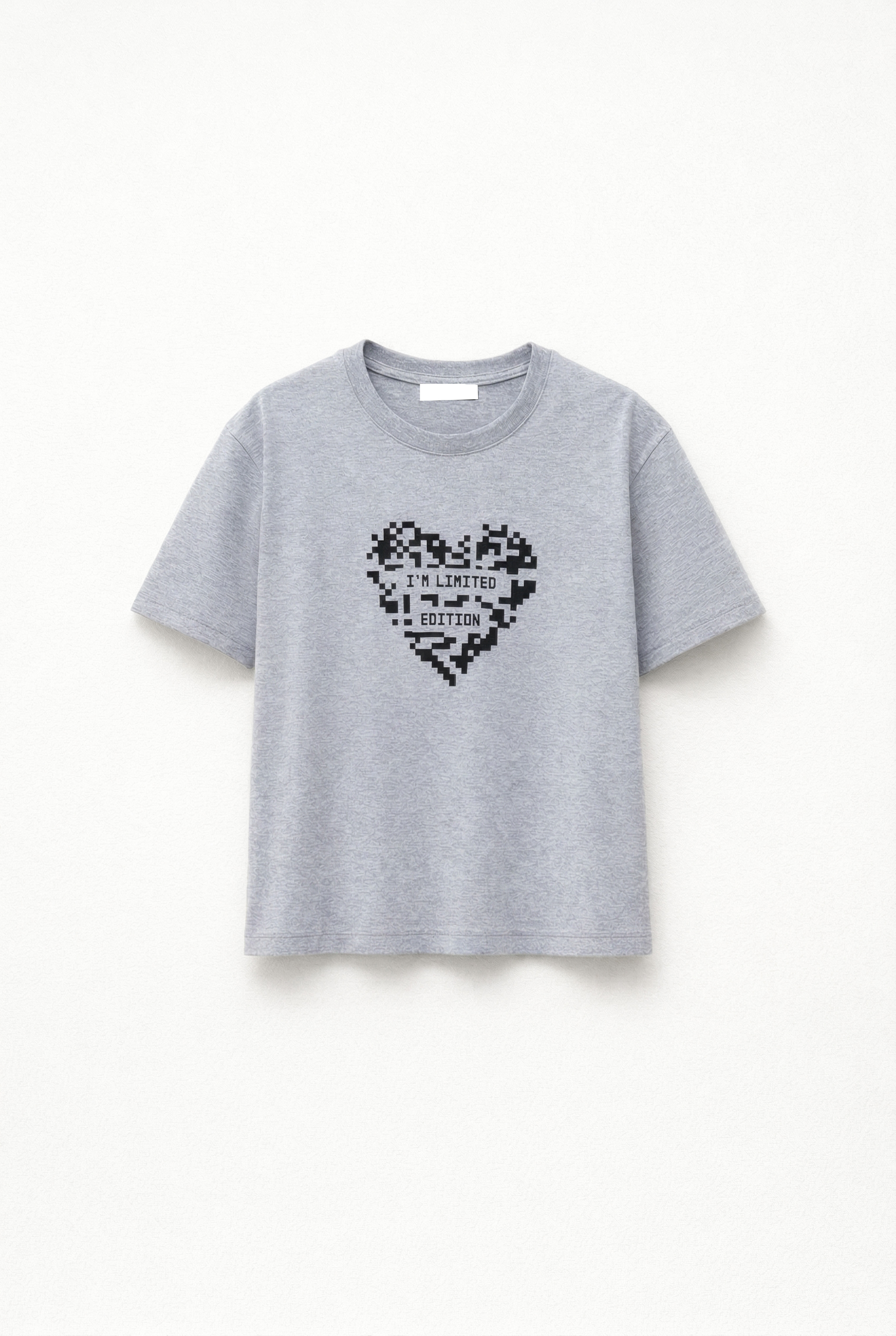 Crew neck, short-sleeved cotton T-shirt with print on the front.