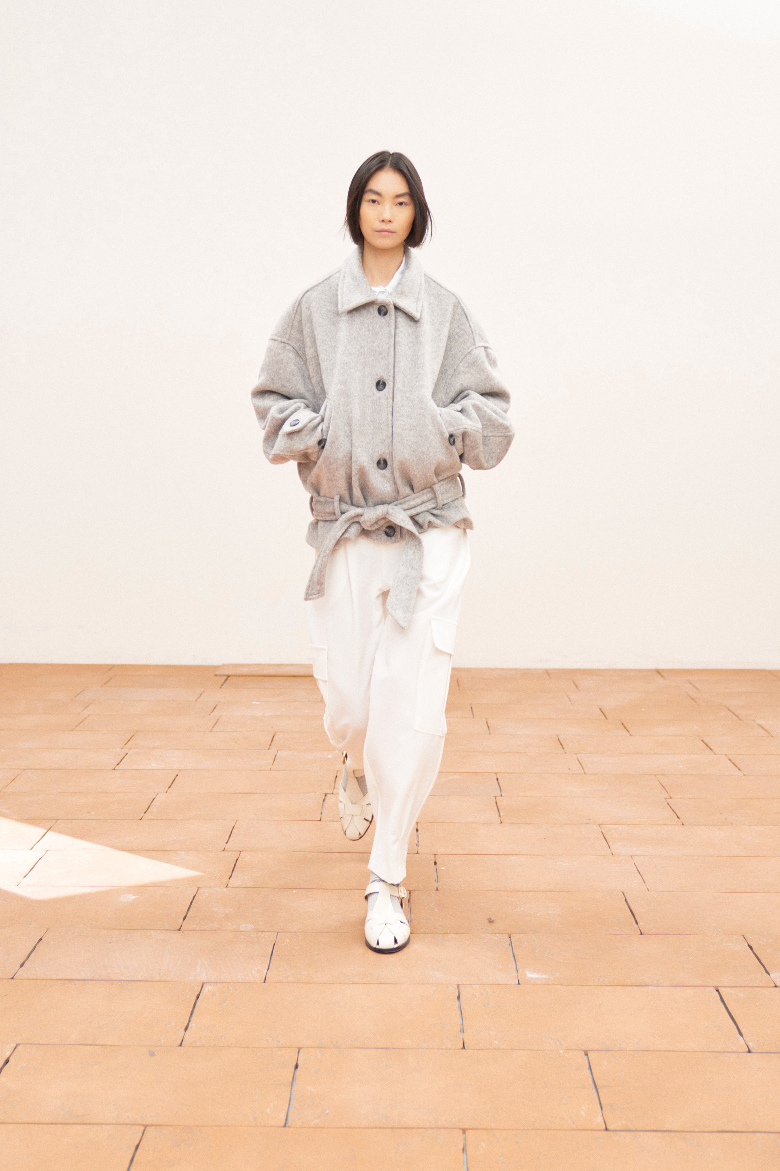 High-waisted cropped trousers with belt loops.