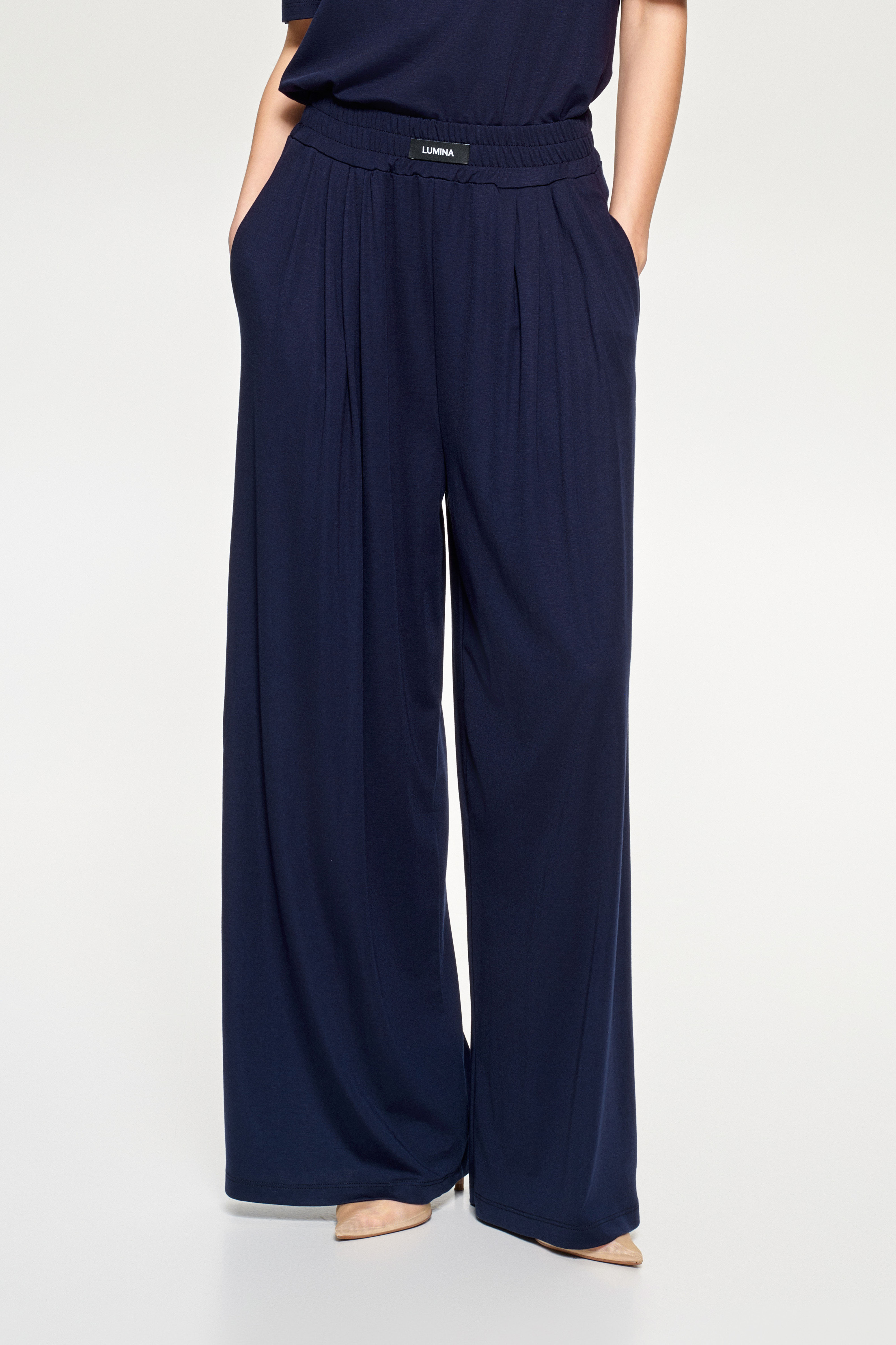 High-waisted palazzo trousers in lyocell blend.