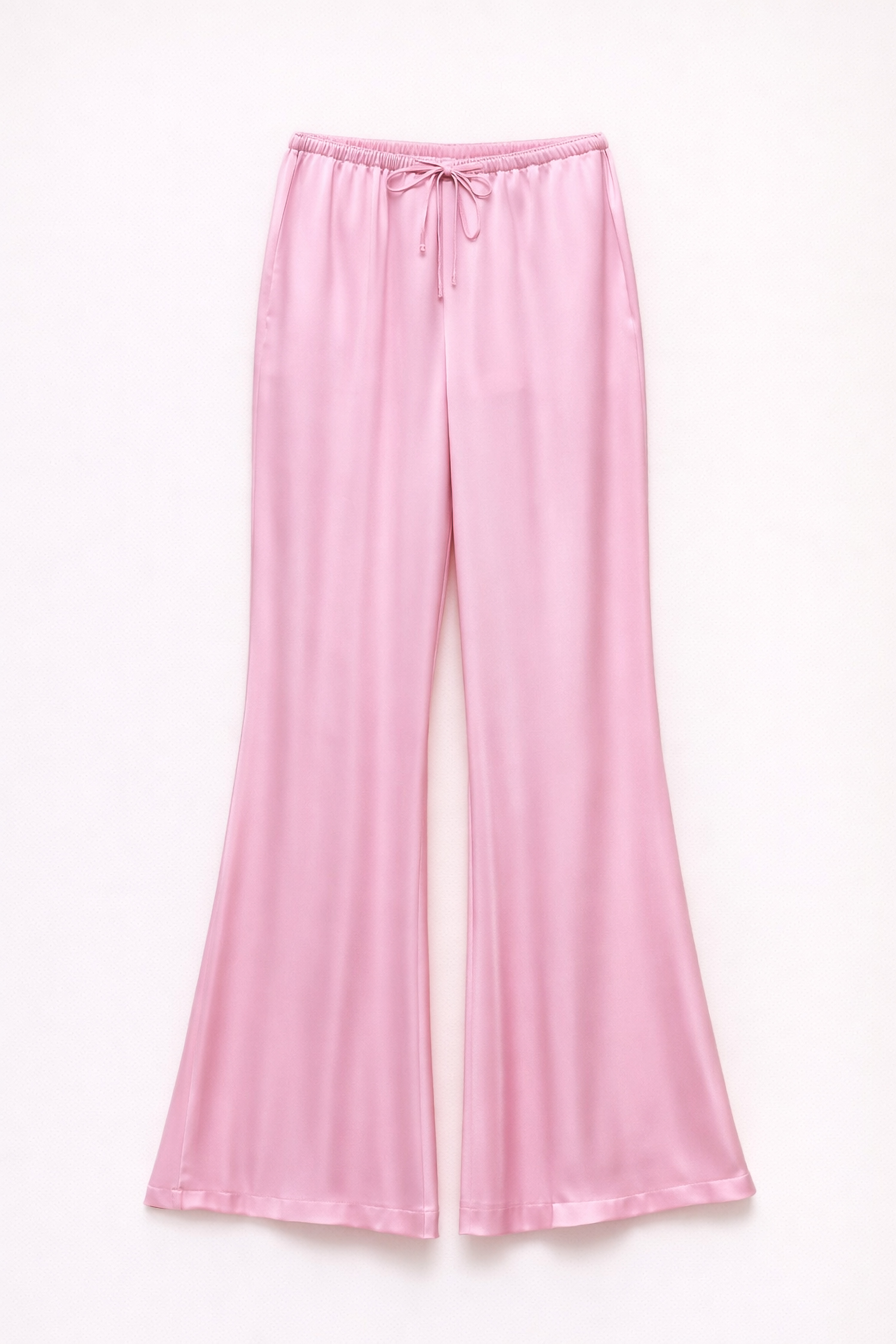 Flared trousers with elasticated waist and adjustable drawstring.