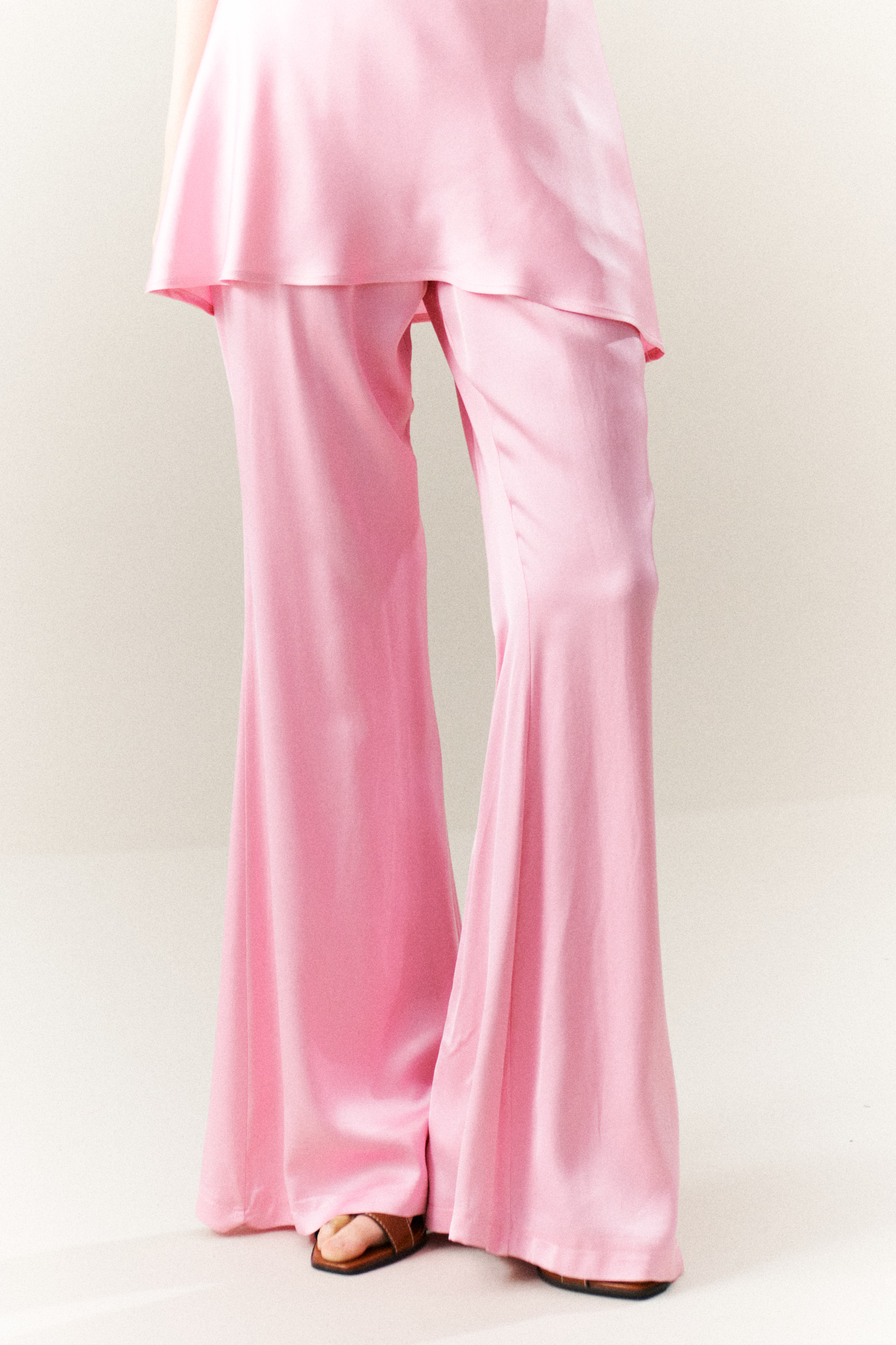 Palazzo trousers in semi-sheer satin fabric.