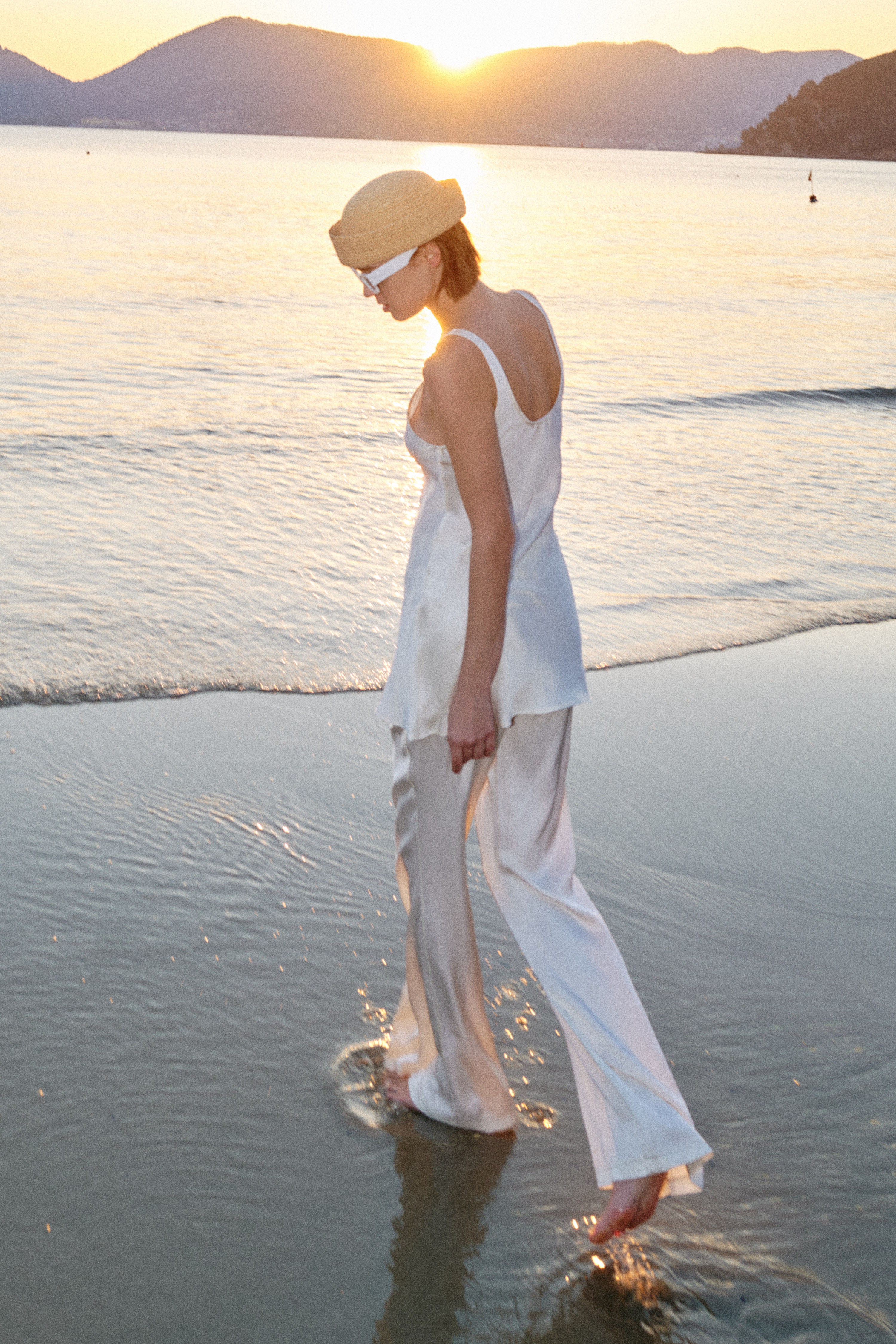 Tank top in 100% viscose satin fabric.