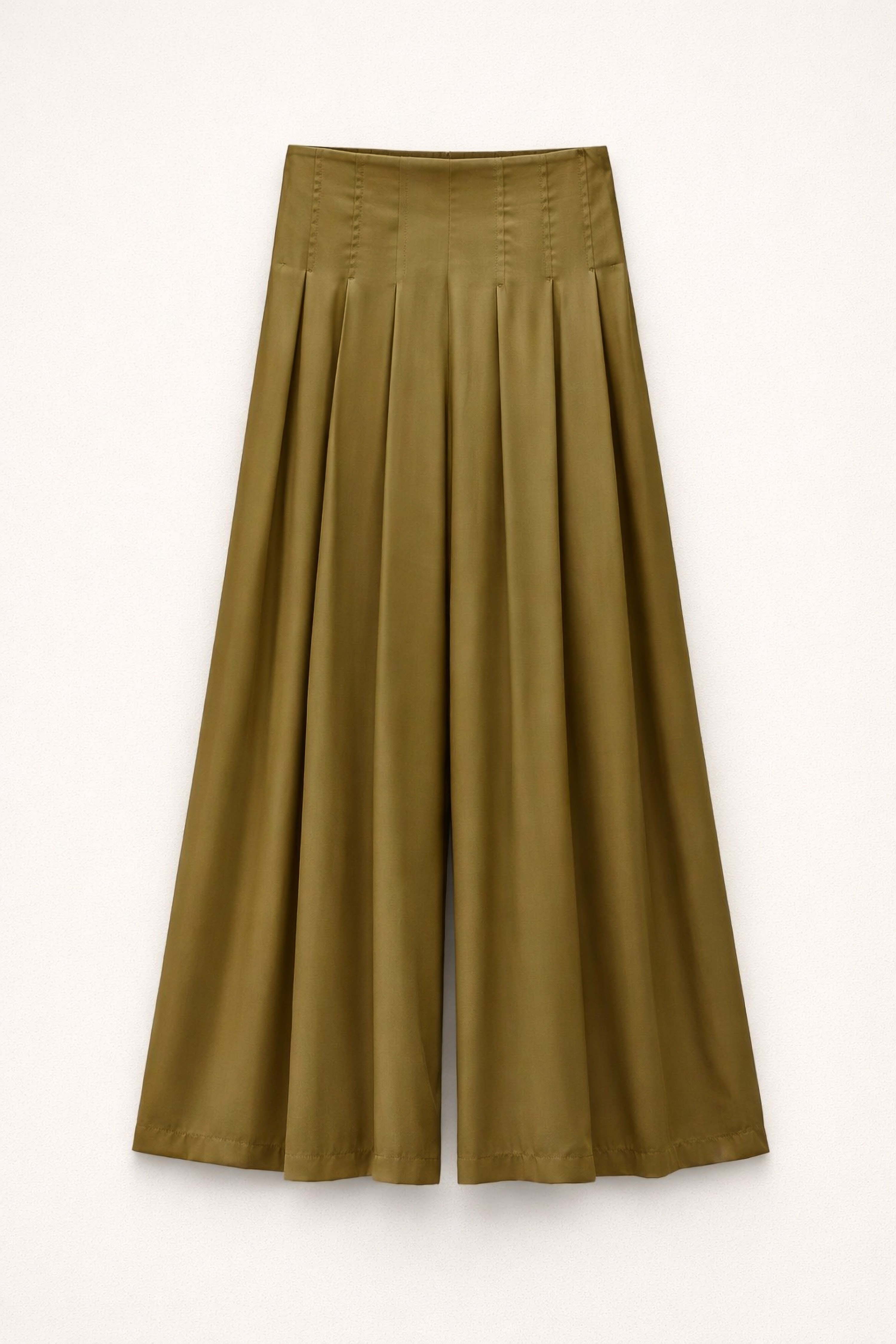 High-waisted wide-leg satin trousers with pleats.