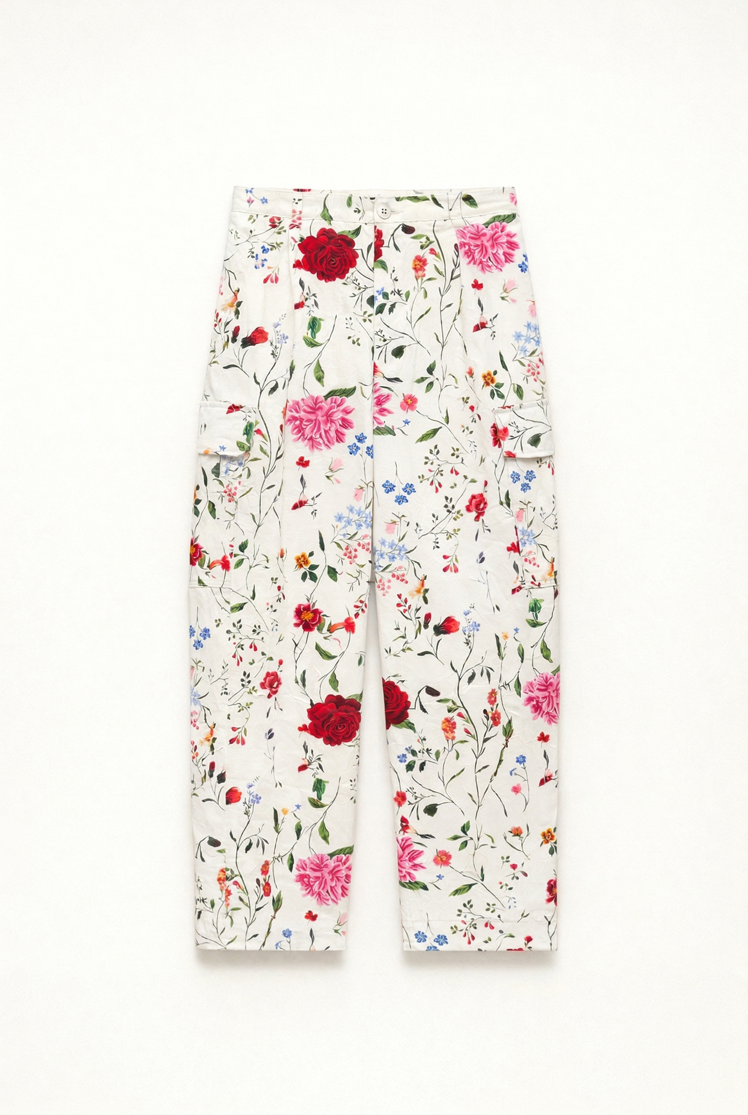 Cargo trousers with floral camouflage print.