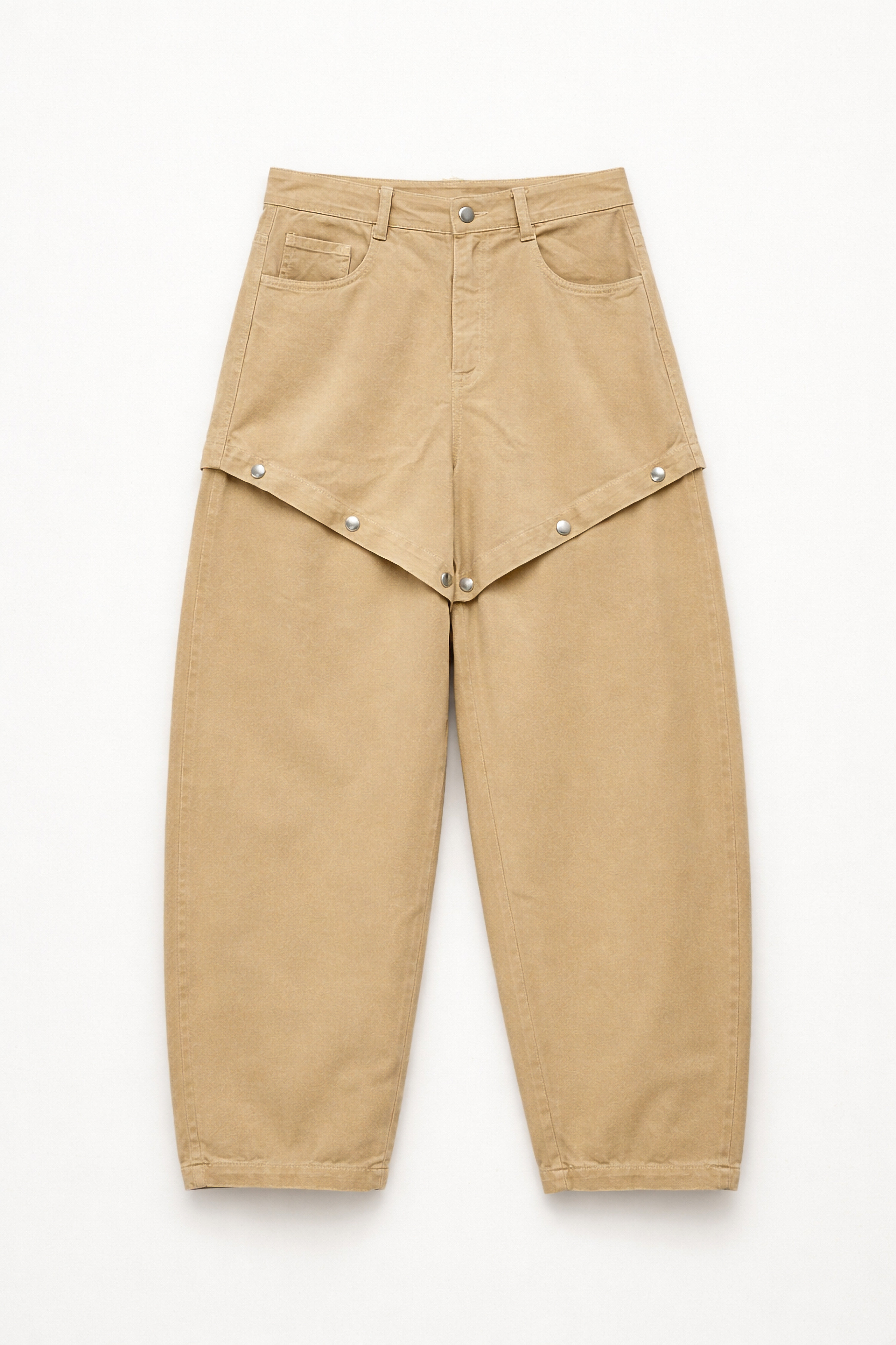 and decorative, adjustable ribbons. Back pockets with flaps.