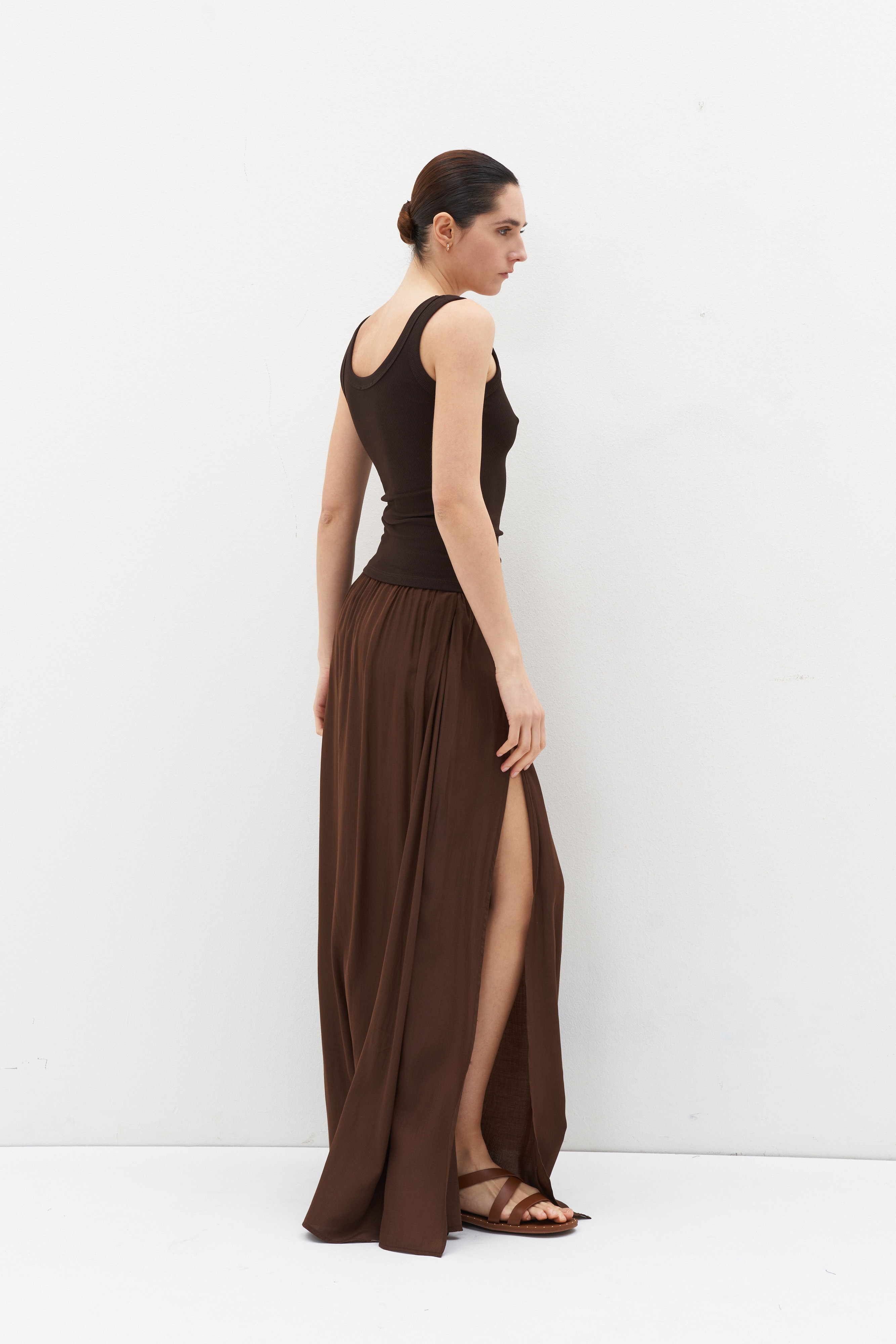 Stretch ribbed silk blend tank top.