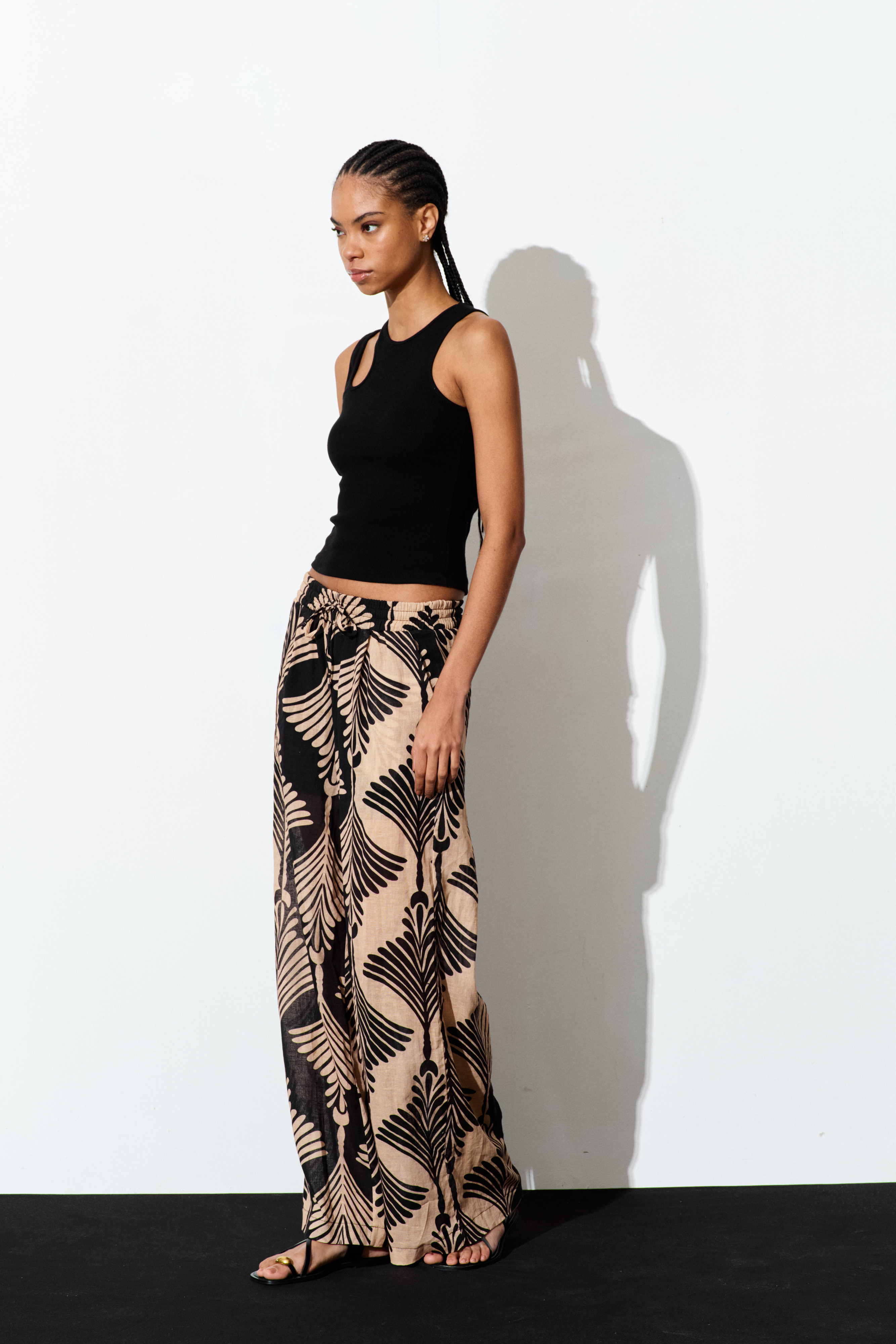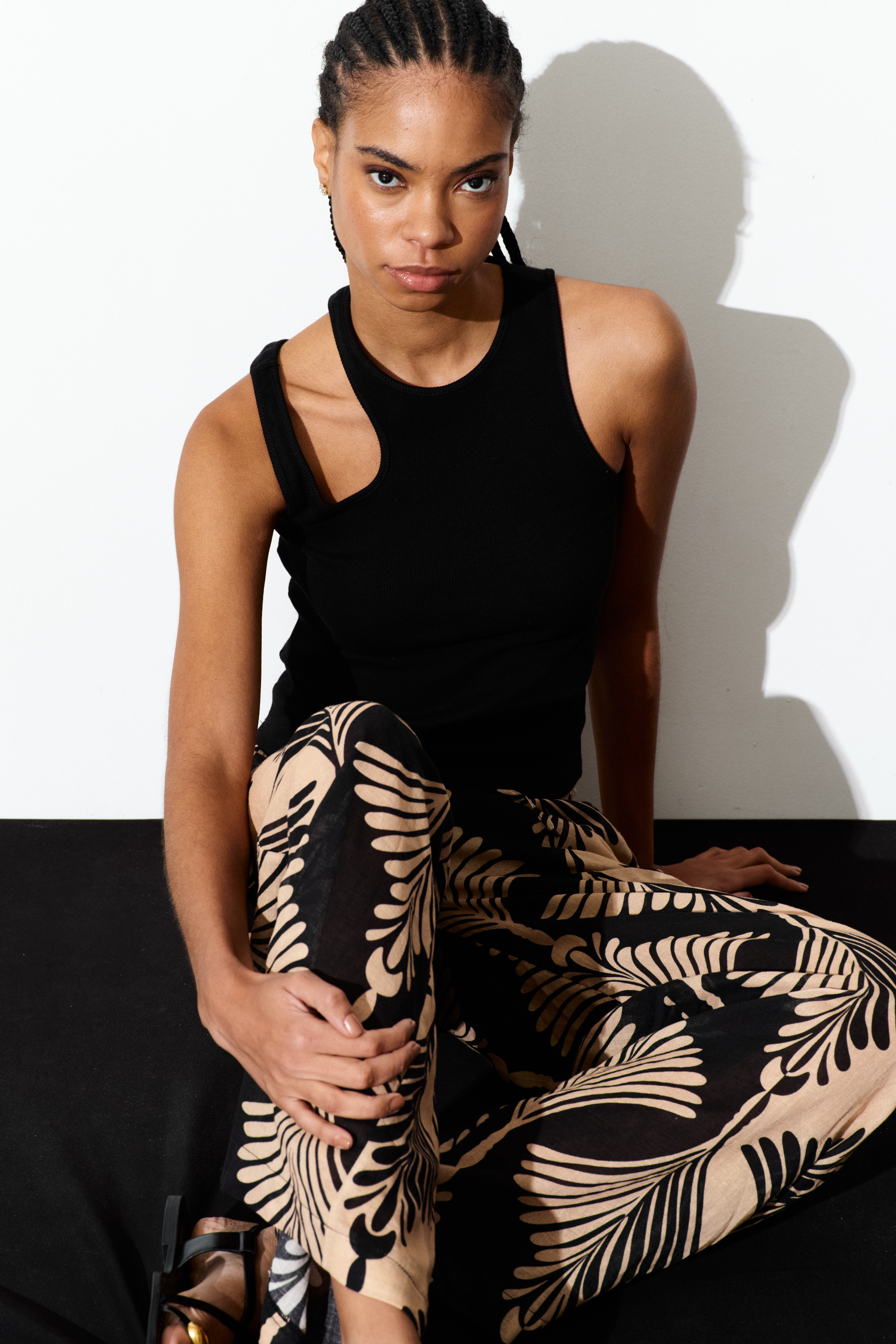 Structured sleeveless top with floral print.