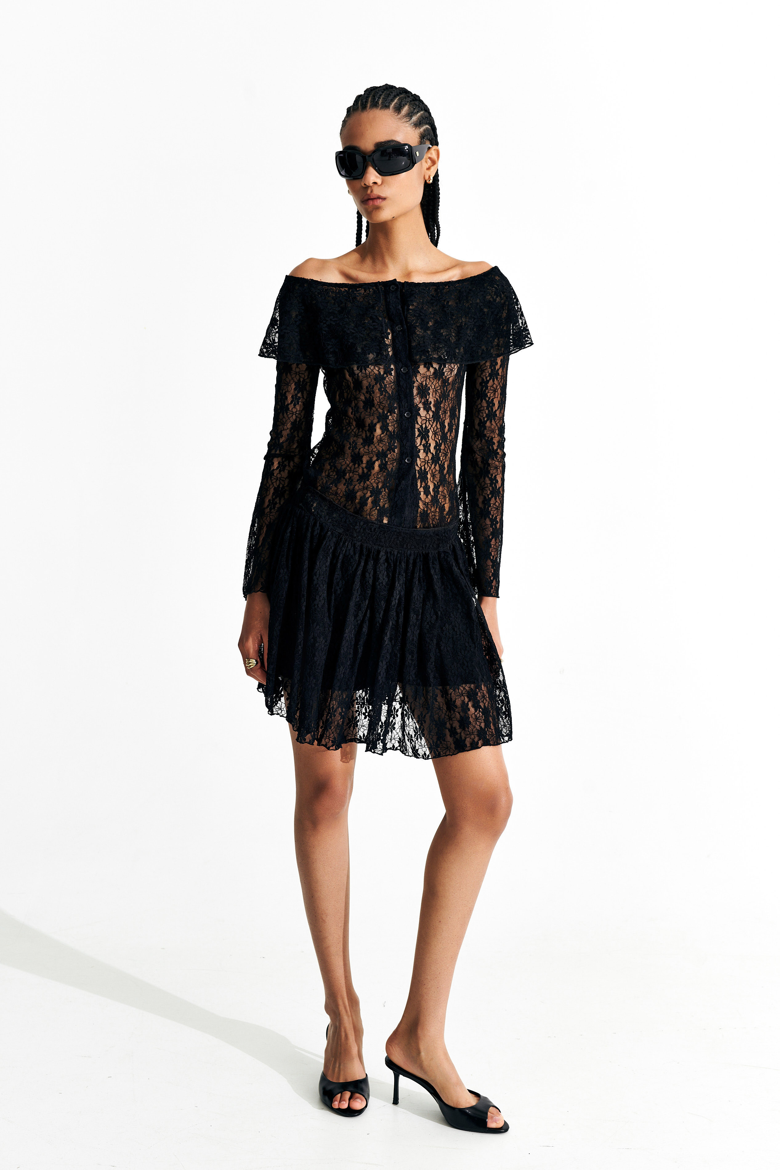 Mini skirt made of floral lace.