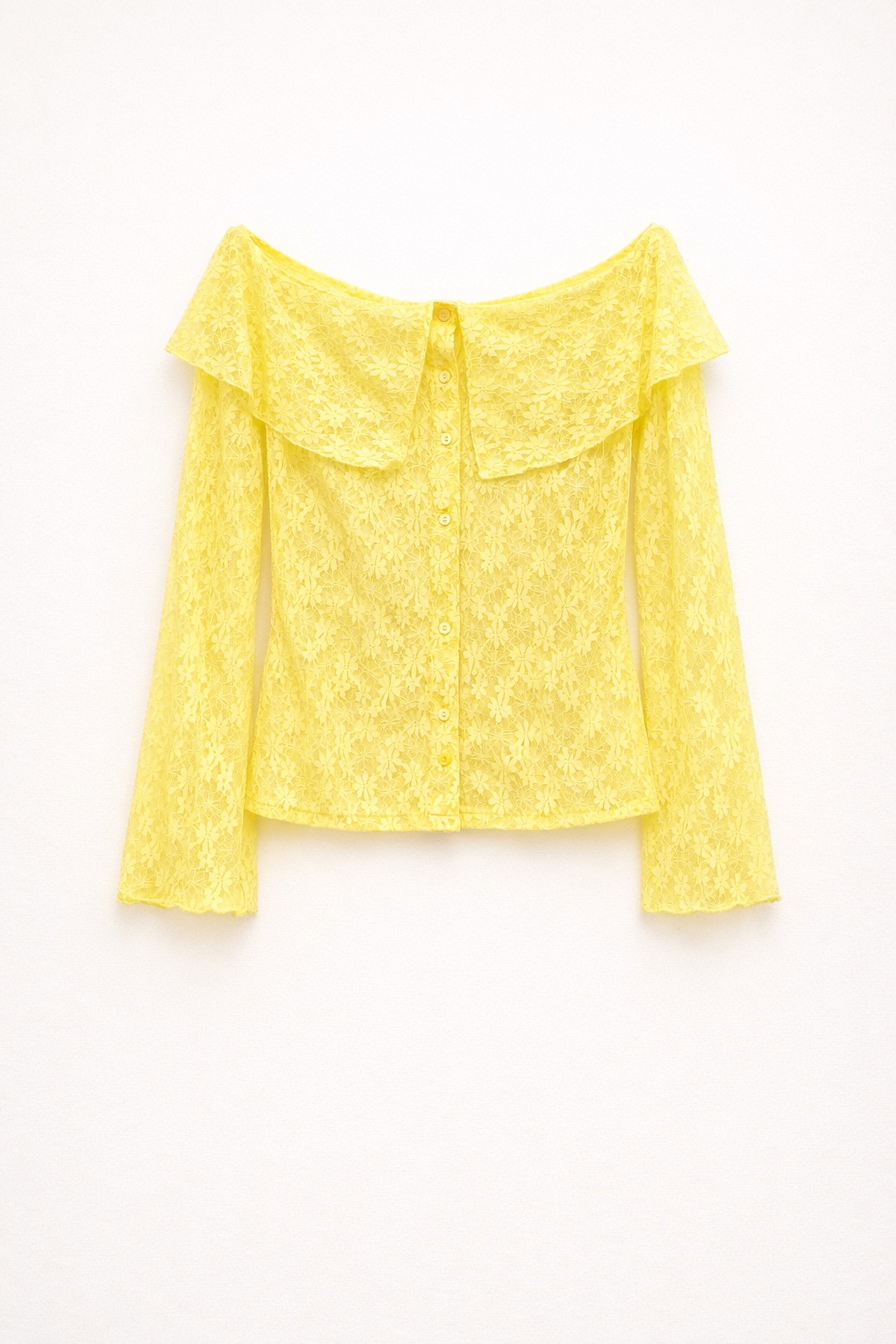 Wide off-the-shoulder top with elasticated ruffles.