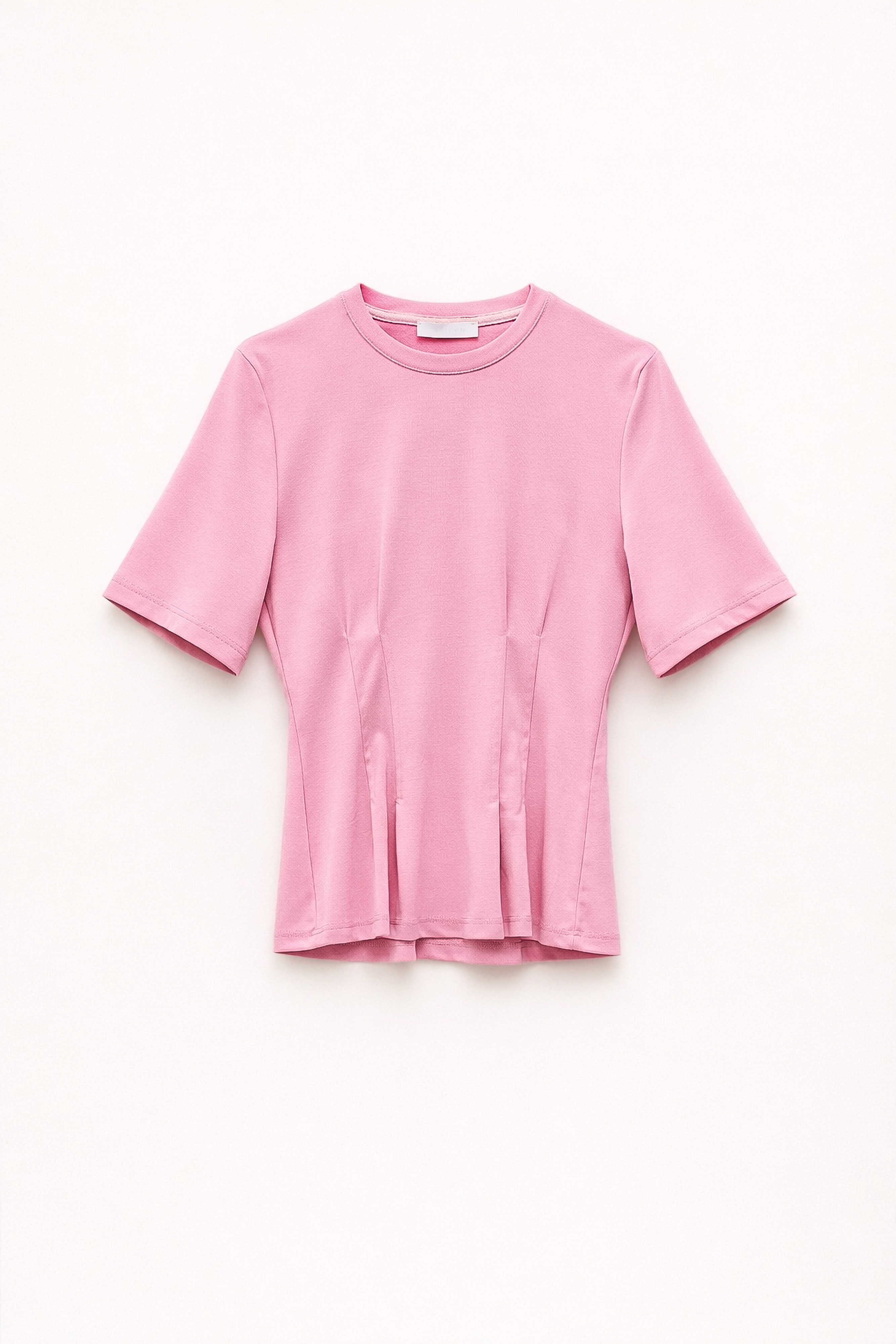 Round neckline at the front. Short sleeves.