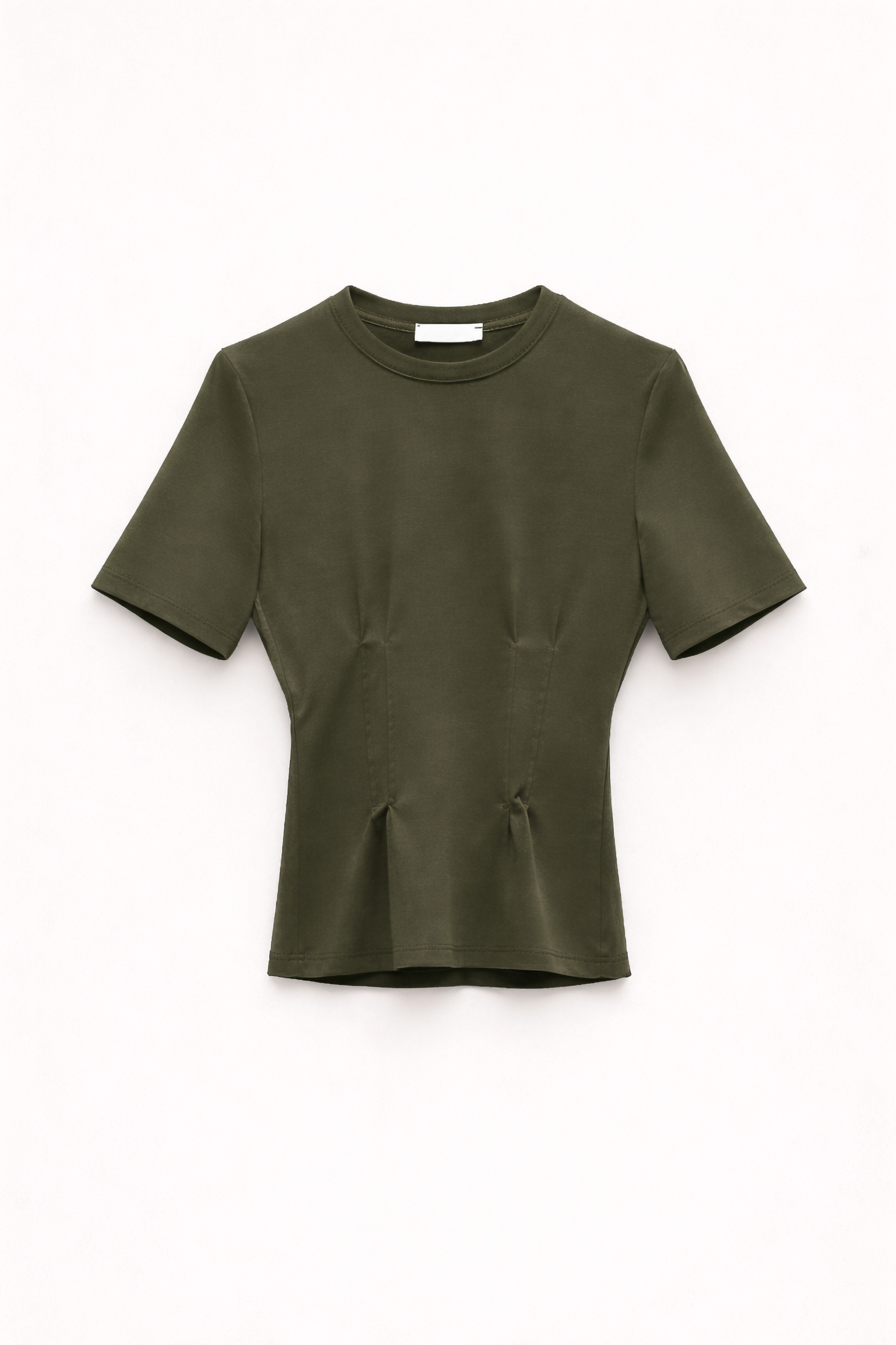 Round neckline at the front. Short sleeves.