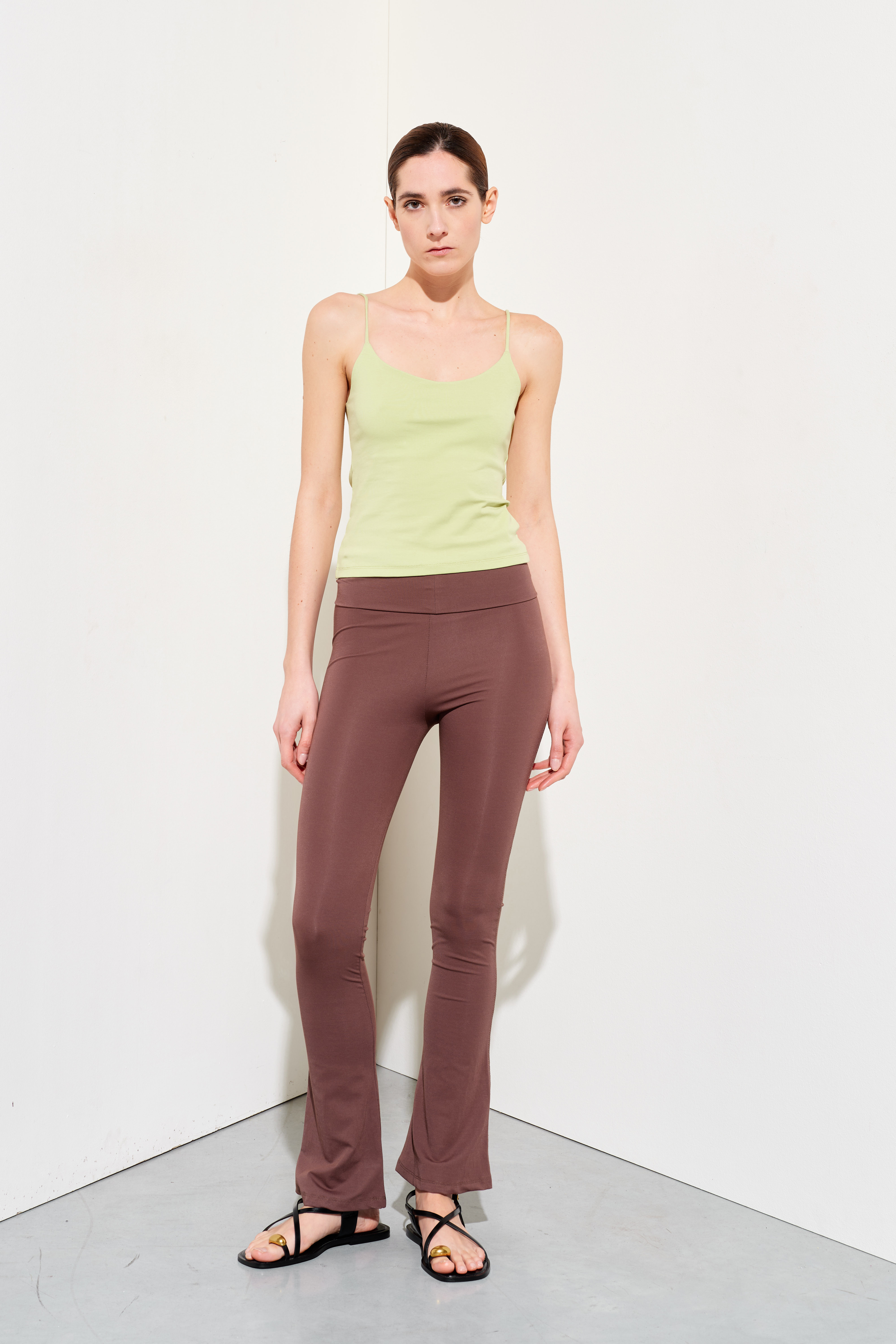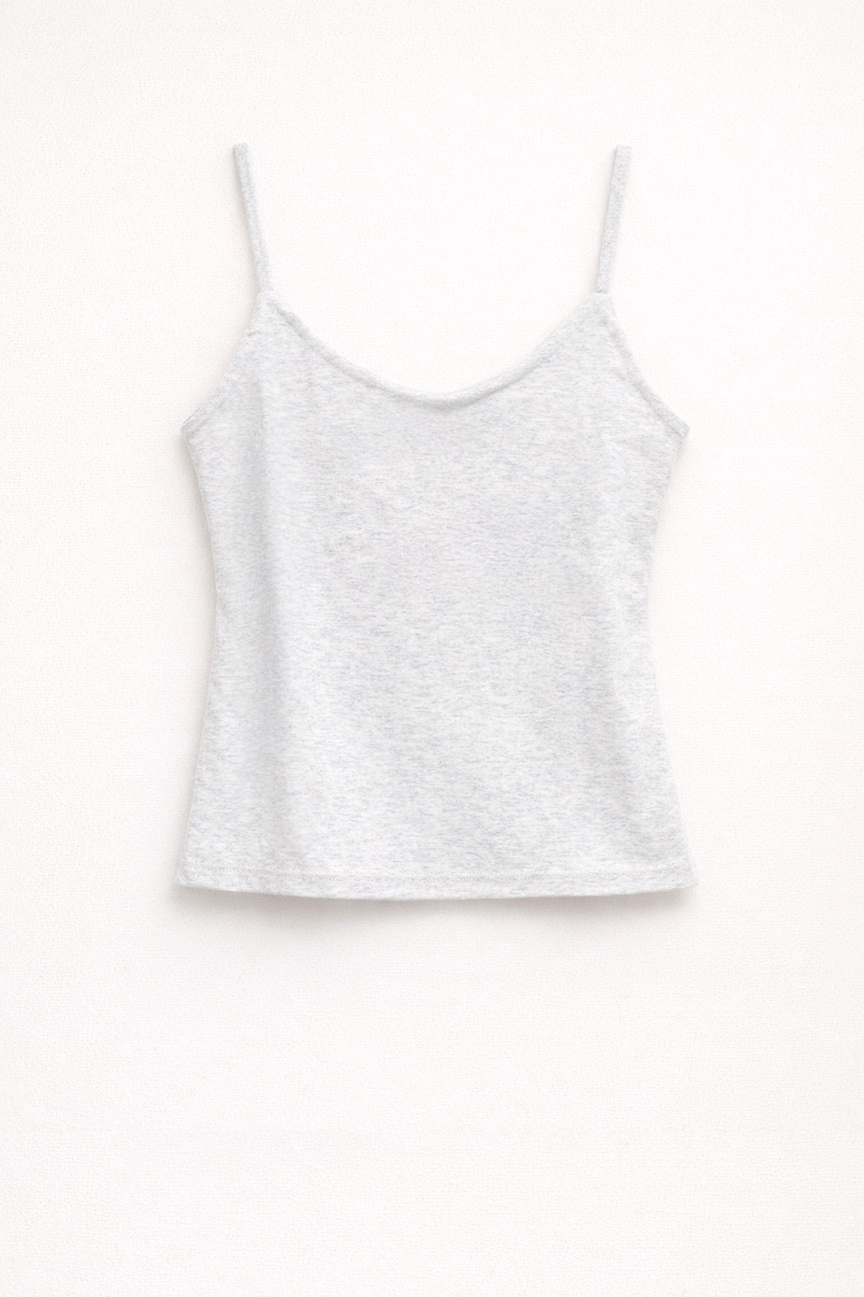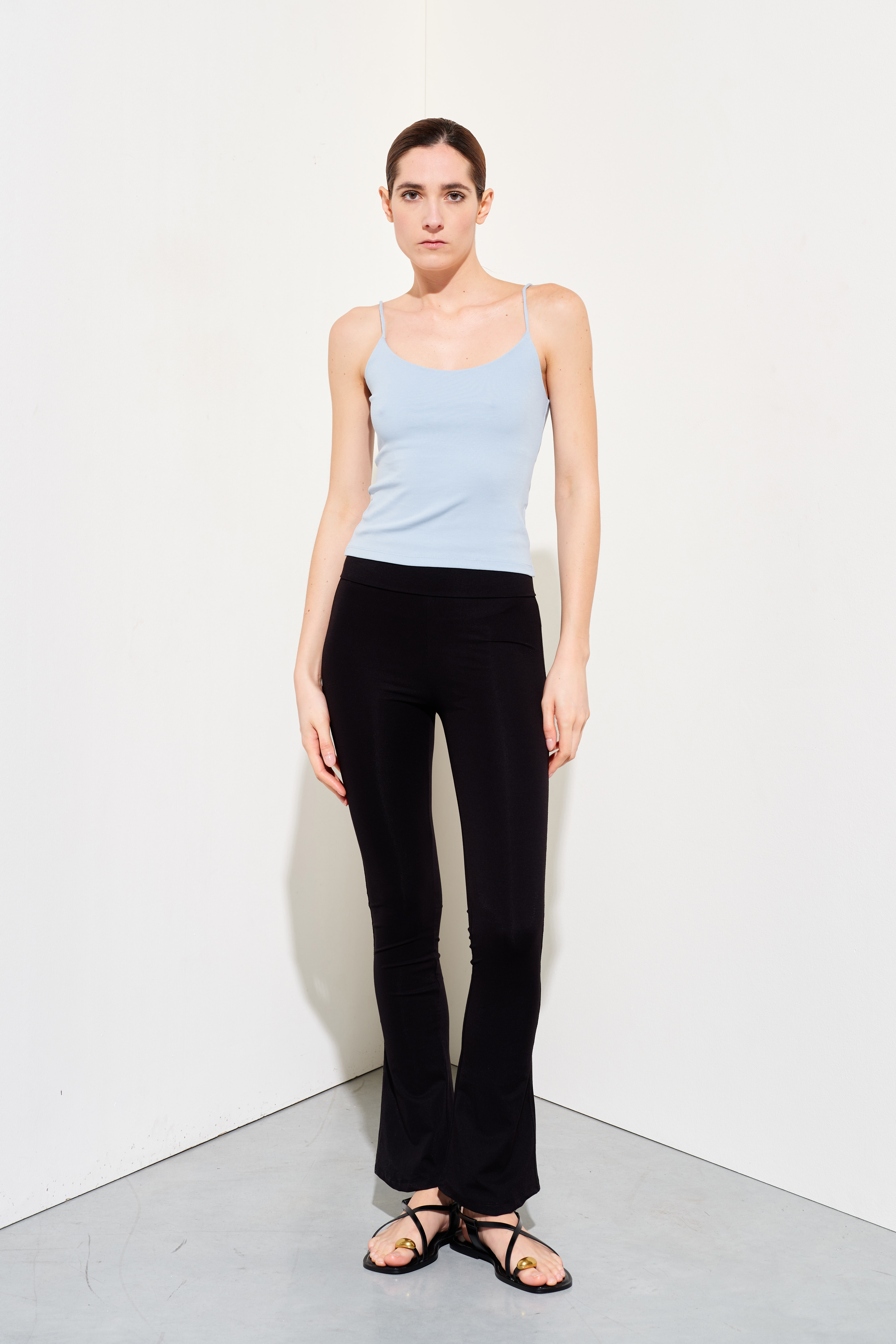 Stretch cotton jersey tank top. Wide crew neckline with a finished finish. Broad shoulders. Front insert with long fringes. Regular fit, available in size S/M, M/L.
