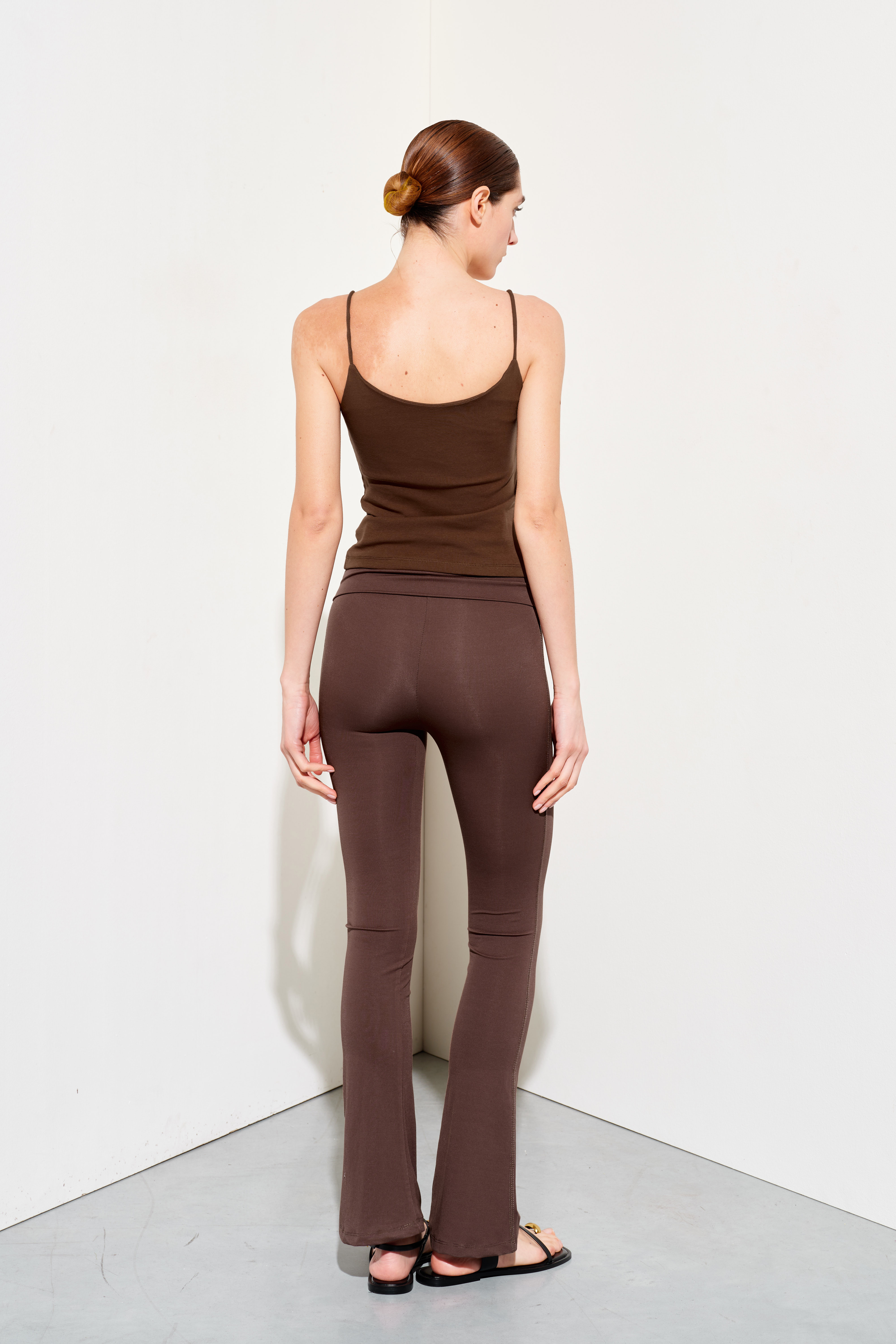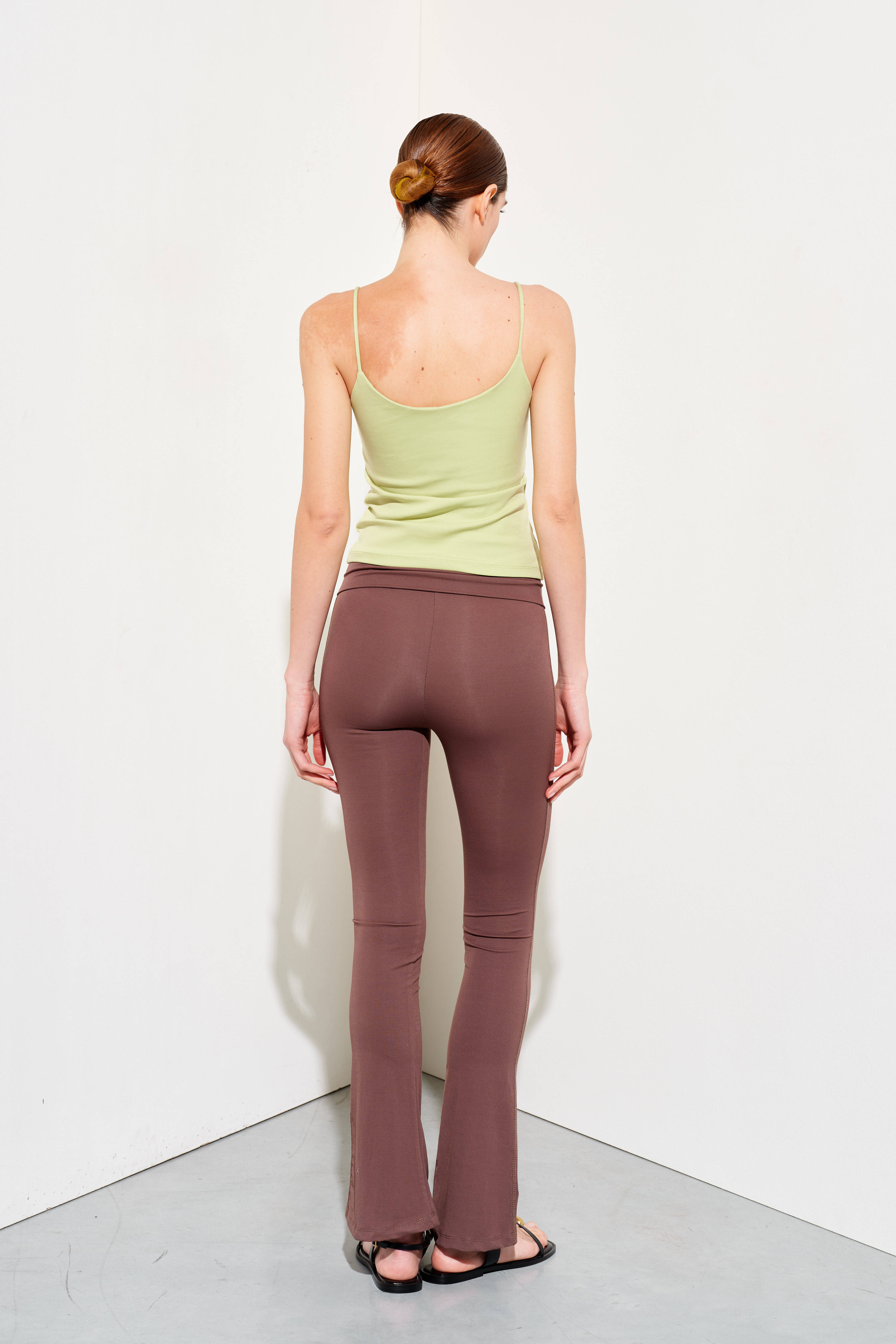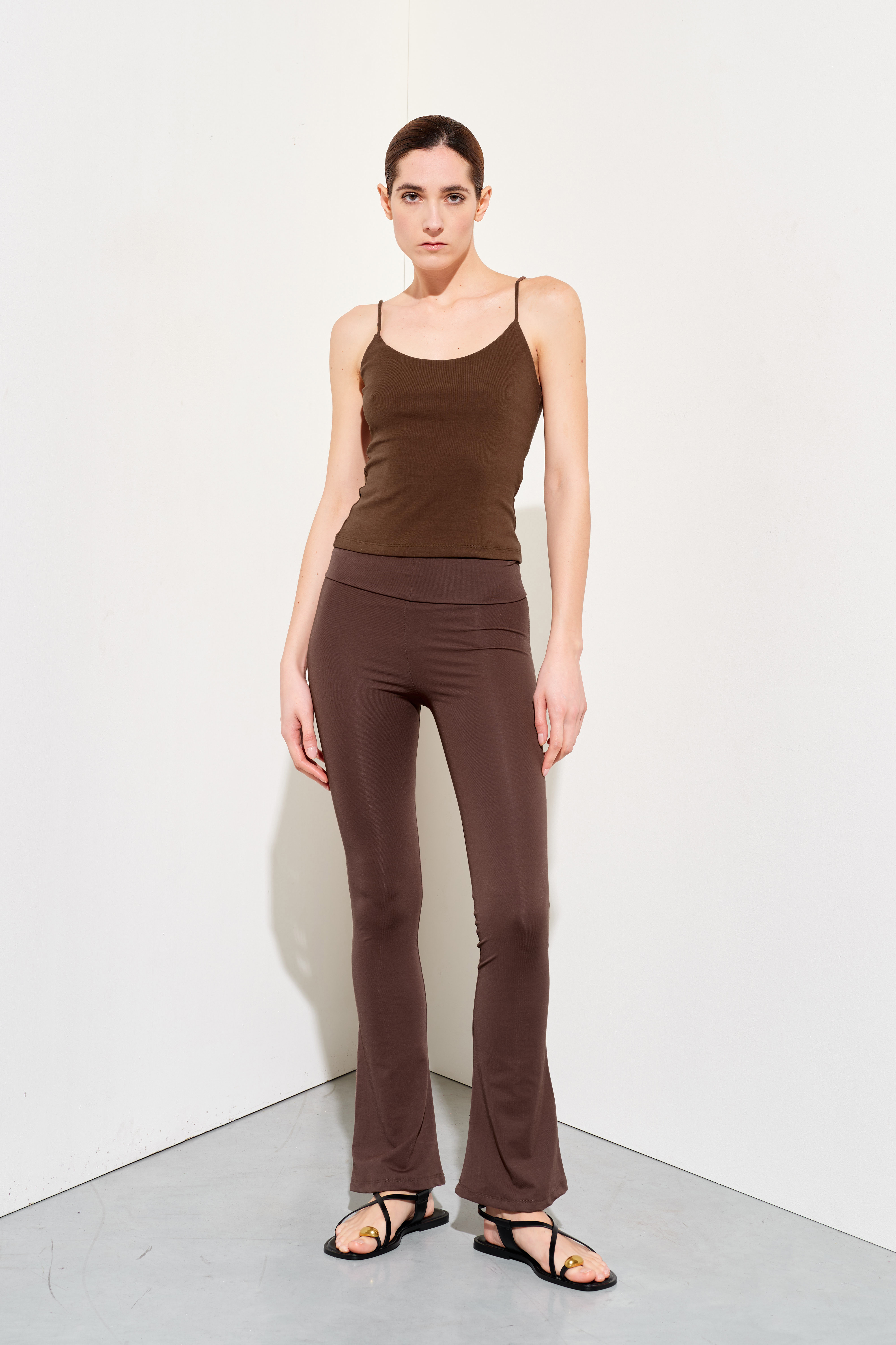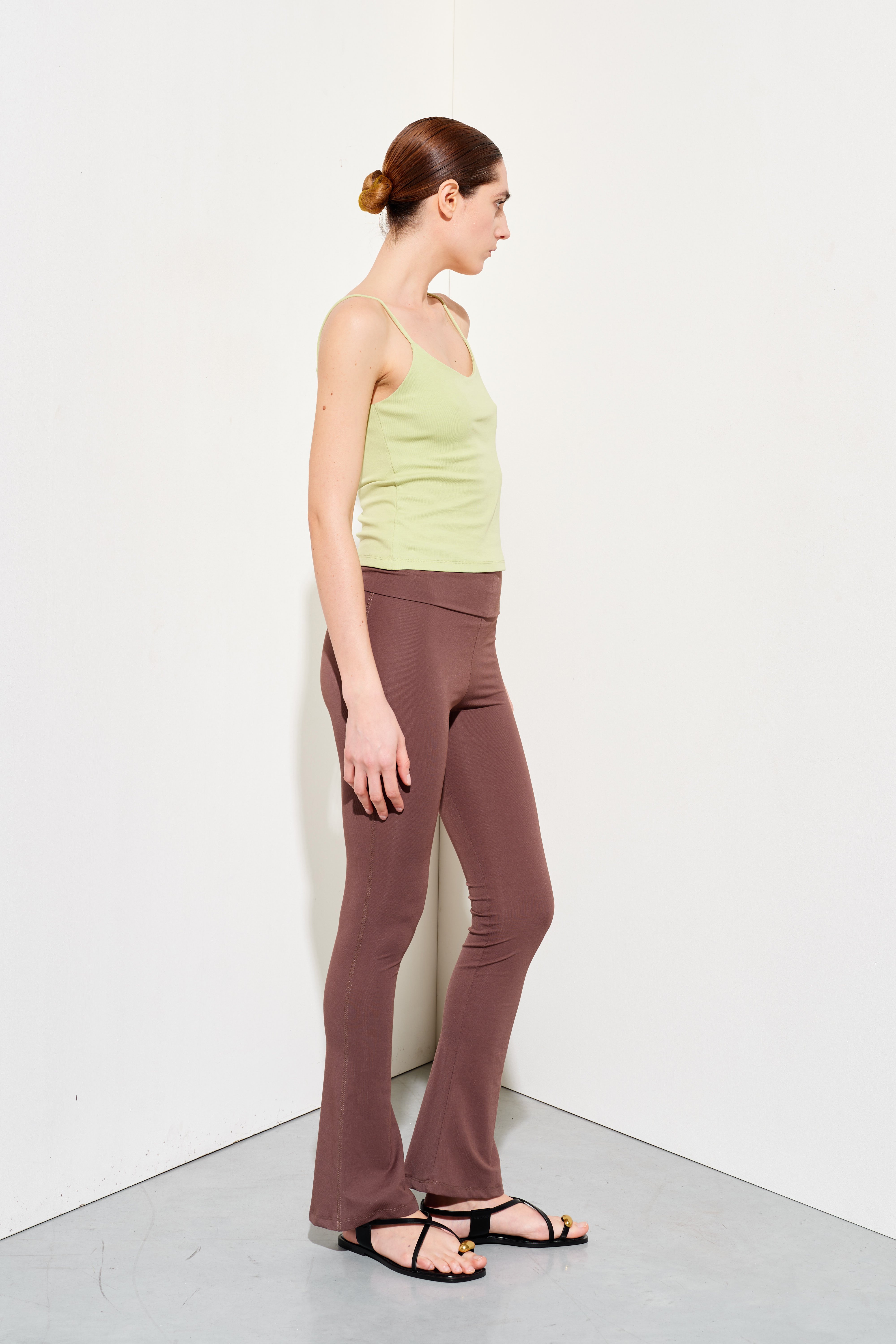 Stretch cotton jersey tank top. Wide crew neckline with a finished finish. Broad shoulders. Front insert with long fringes. Regular fit, available in size S/M, M/L.