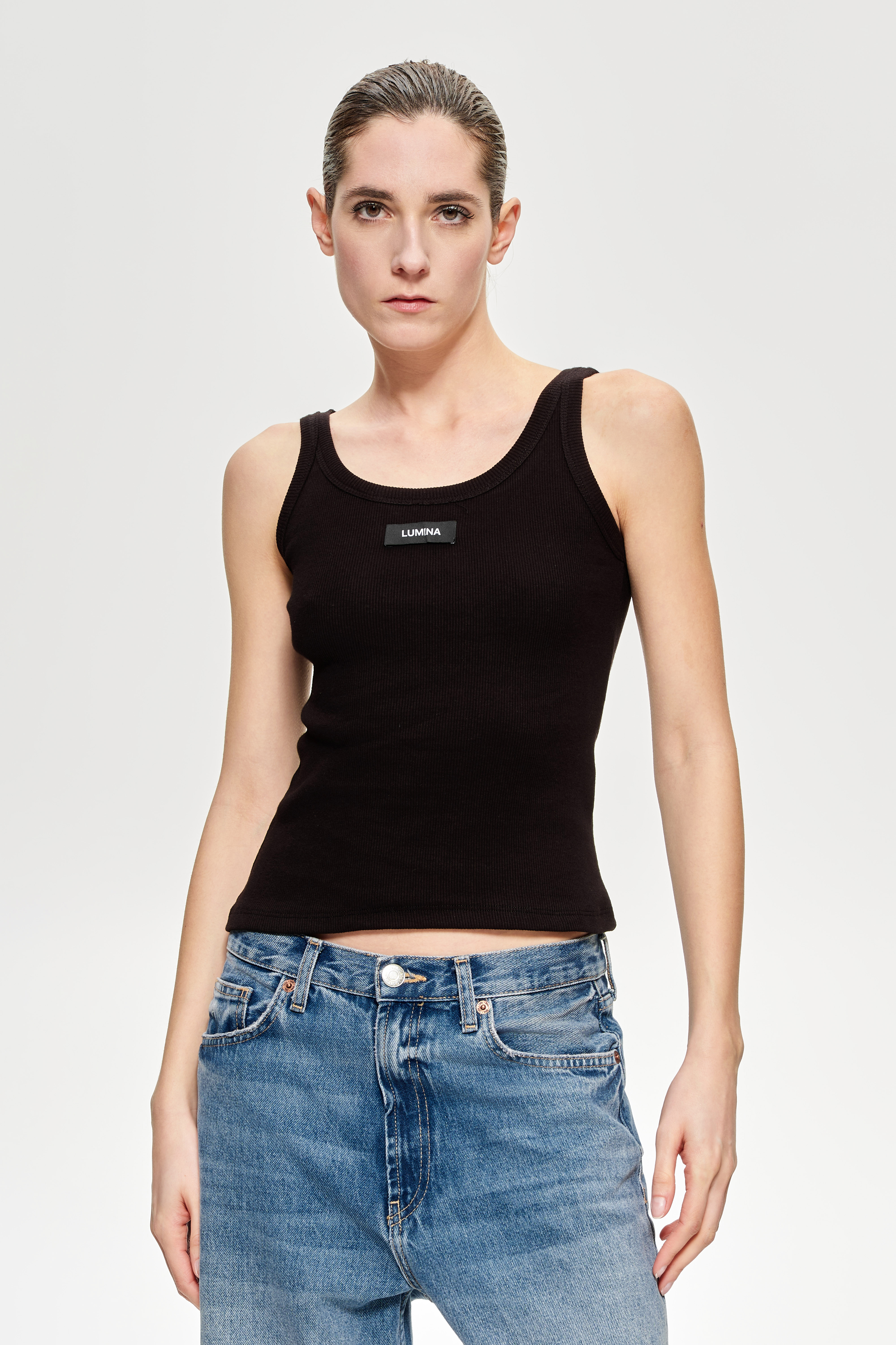Stretch cotton jersey tank top.