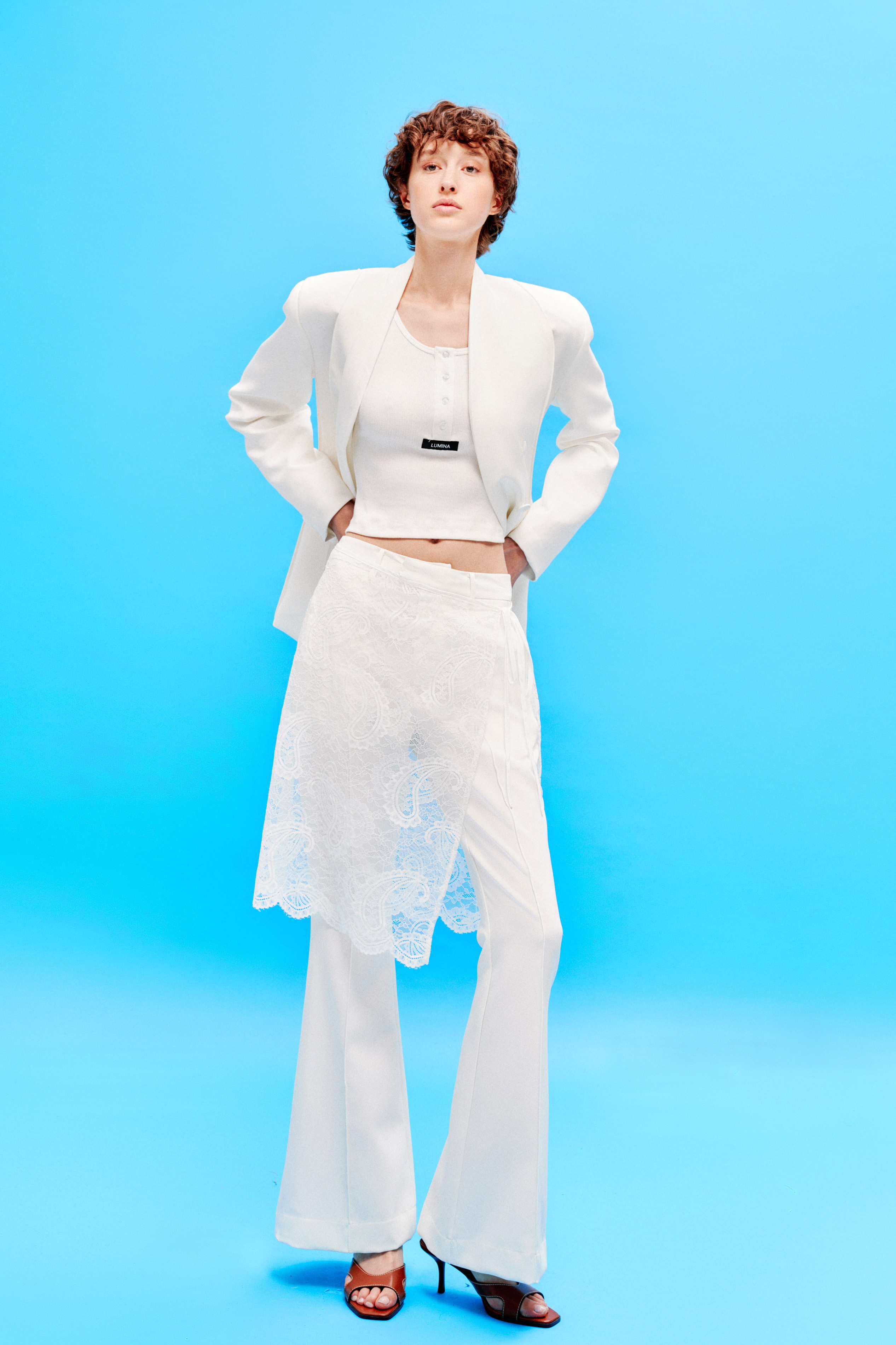 Wide neckline, wide shoulder straps, straight hem finished with lace inserts.