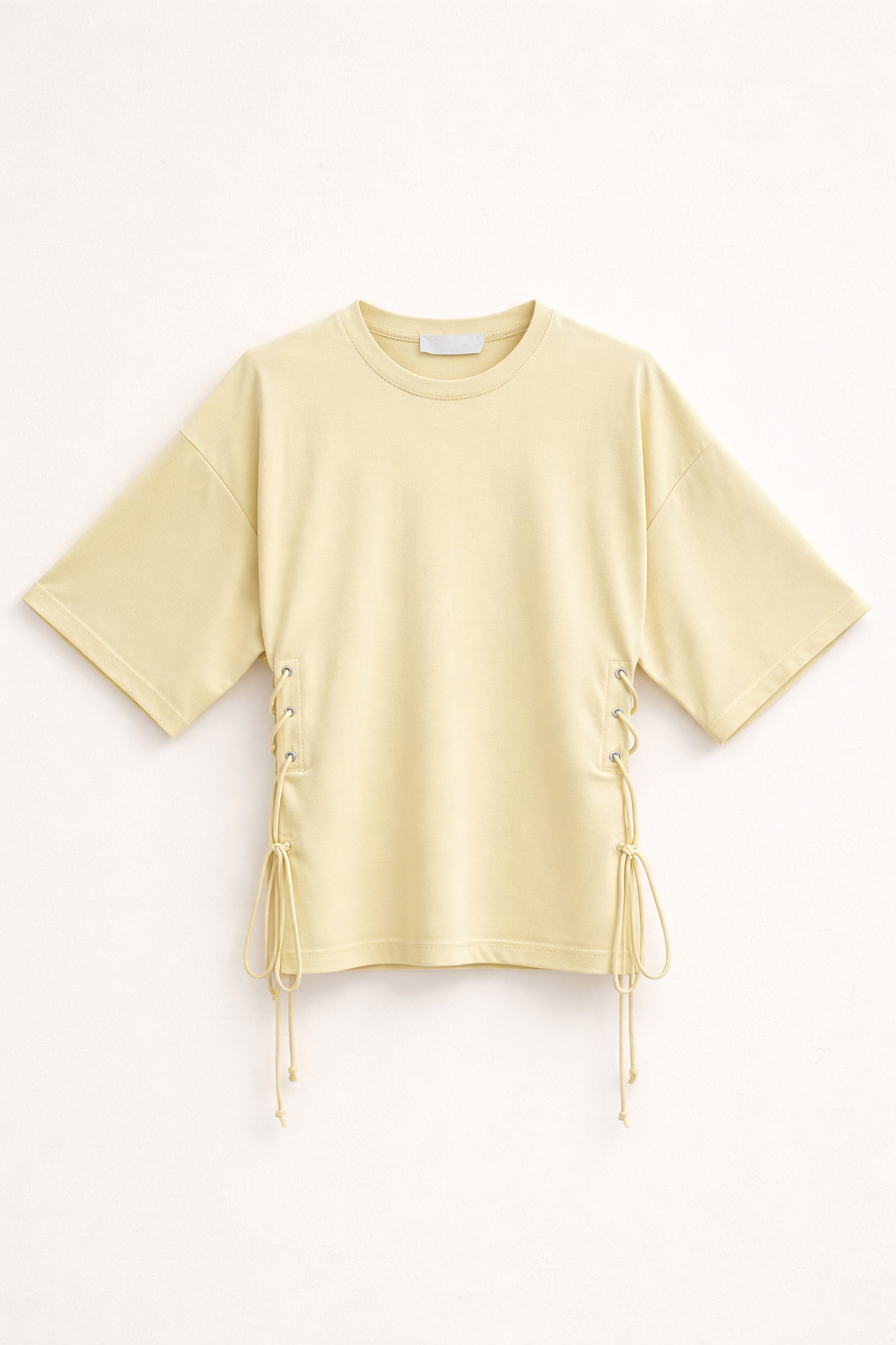 Stretch cotton jersey tank top. Wide crew neckline with a finished finish. Broad shoulders. Front insert with long fringes. Regular fit, available in size S/M, M/L.