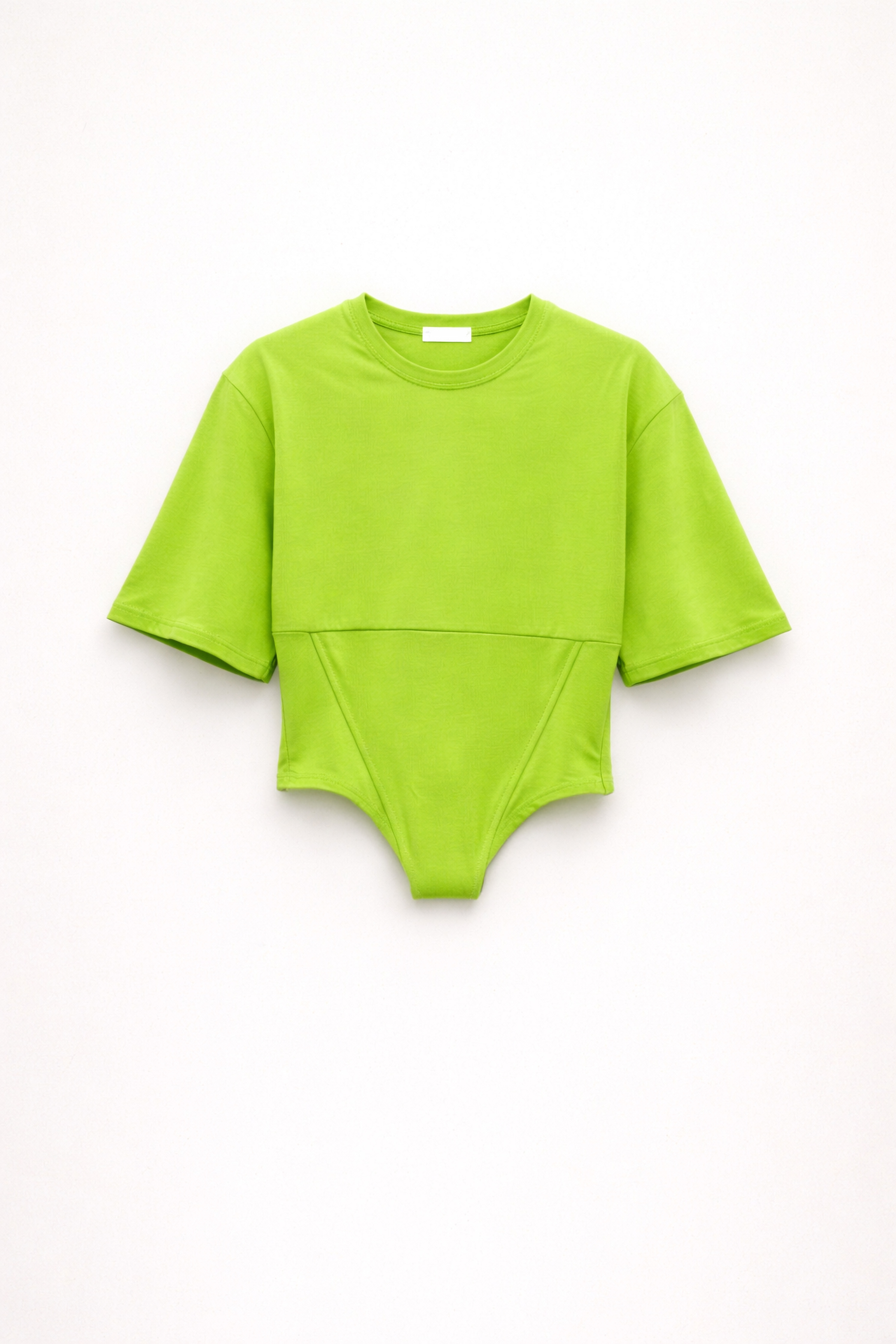 Round neckline at the front. Short sleeves.