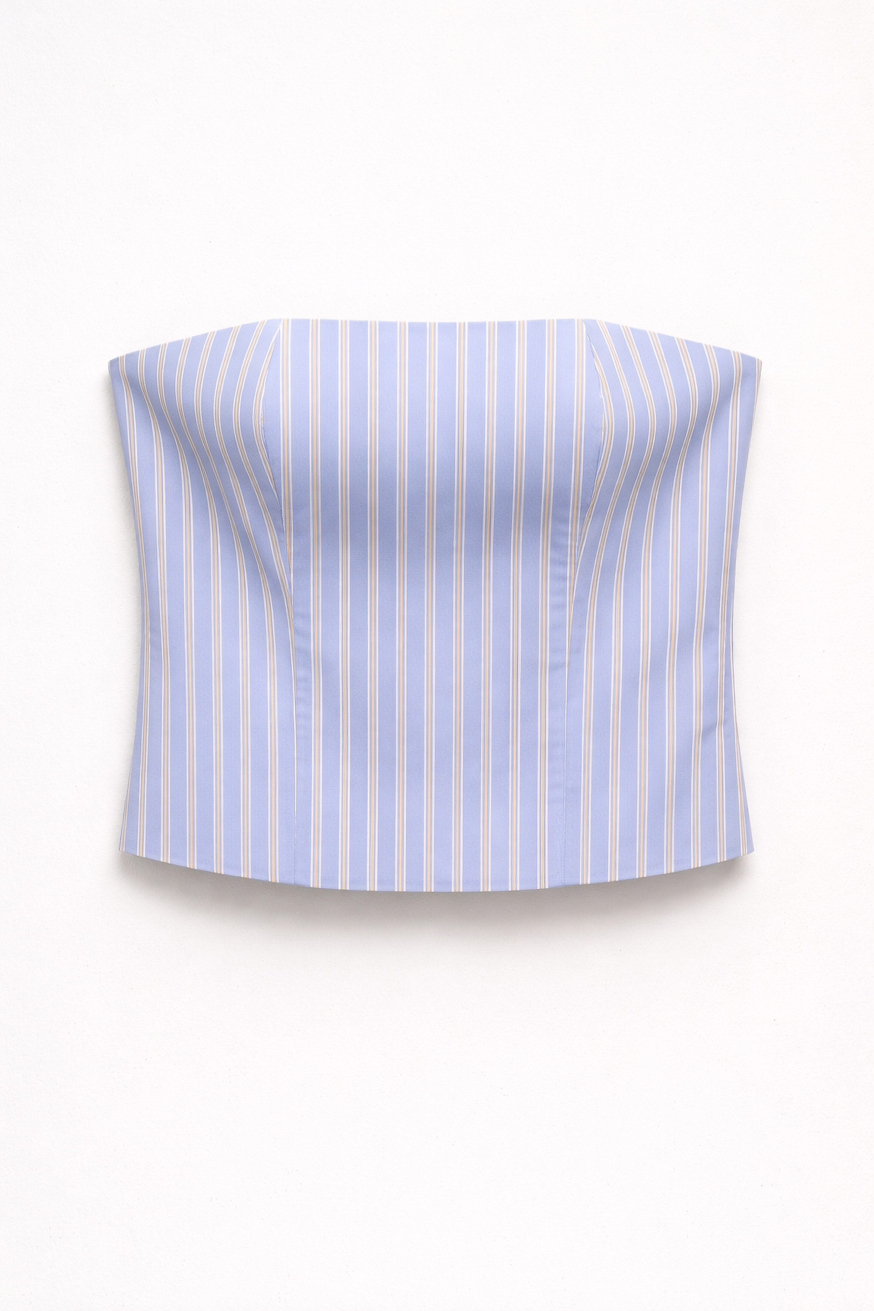 Bandeau top with vertical striped pattern.