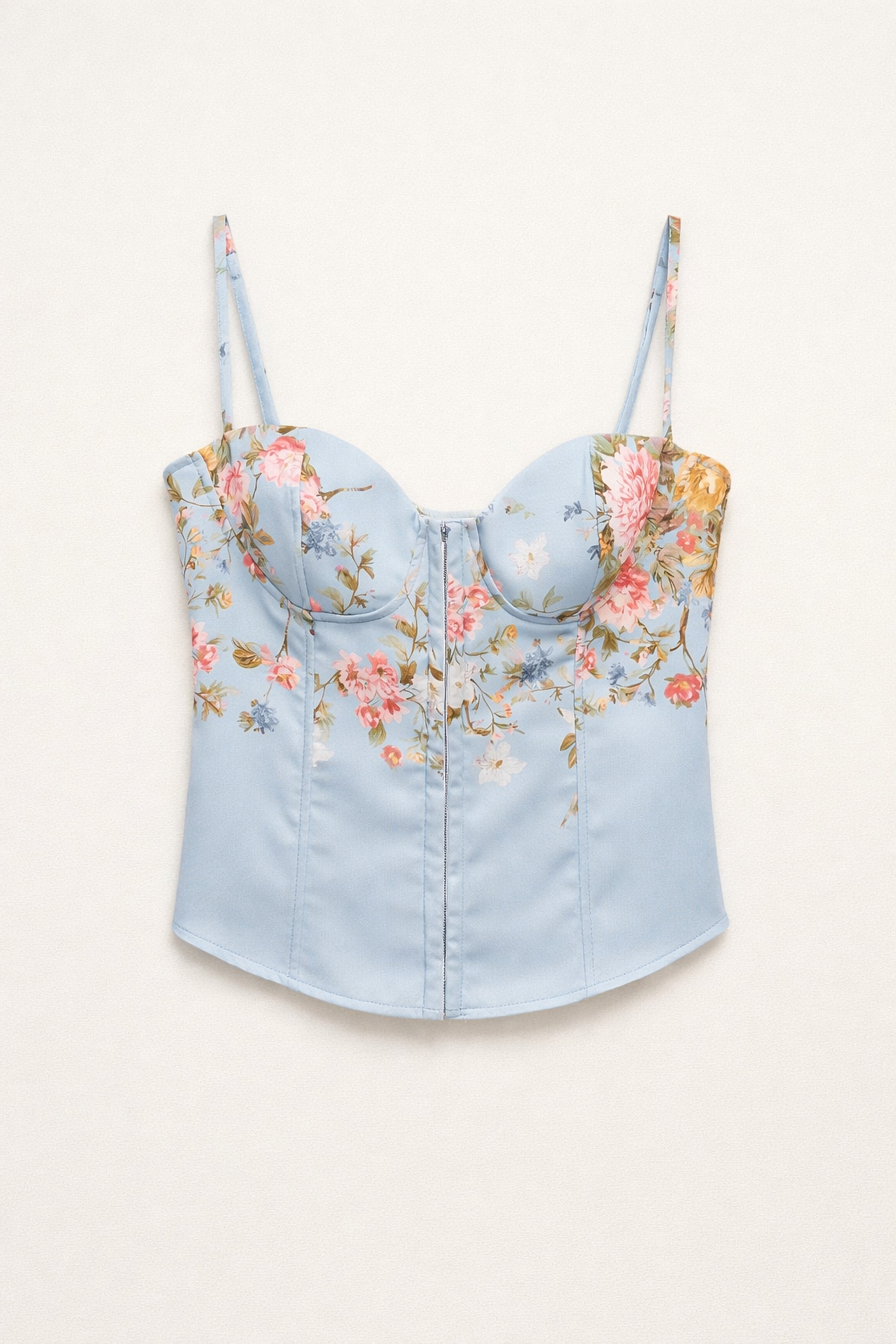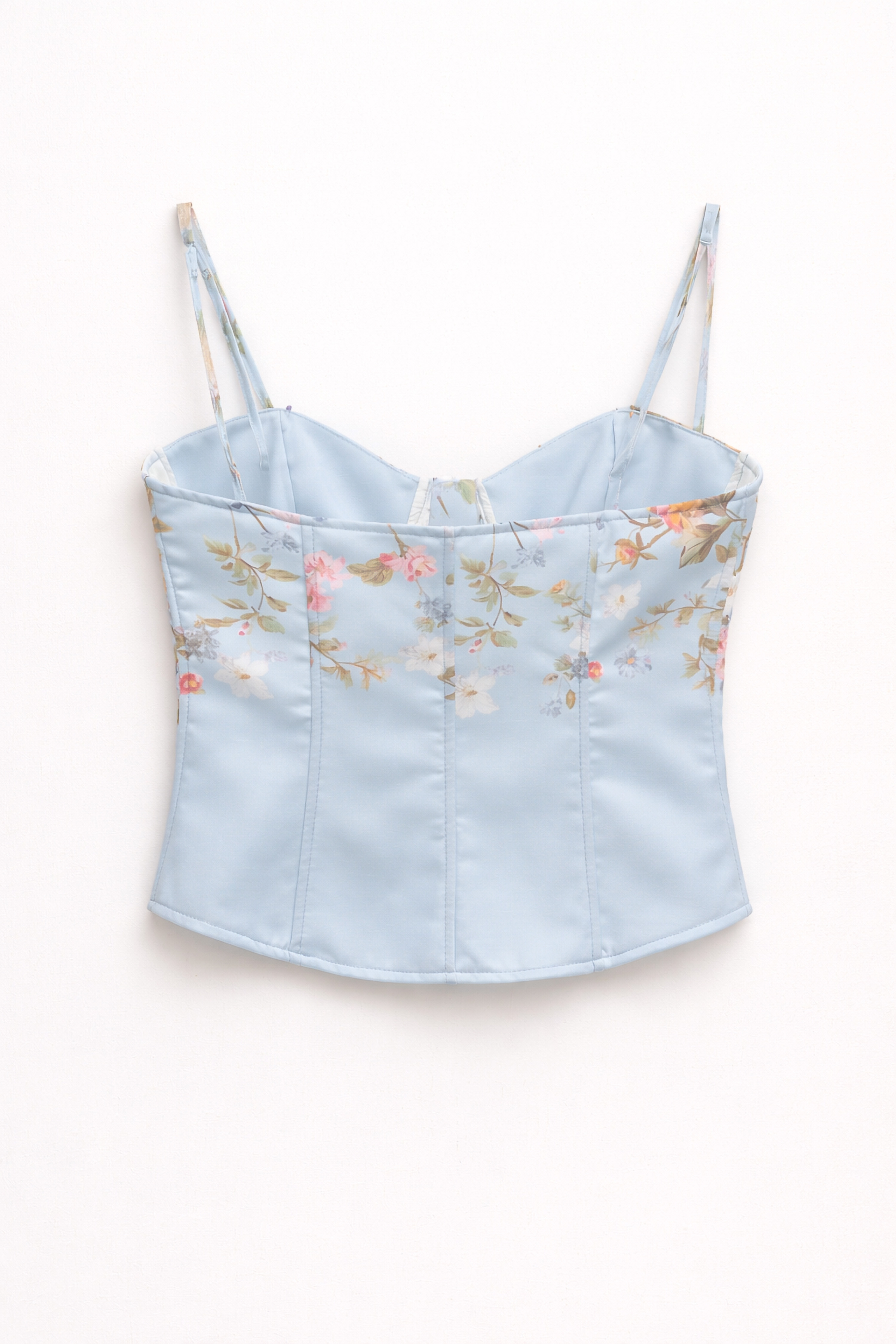 Corset top with all-over floral print.