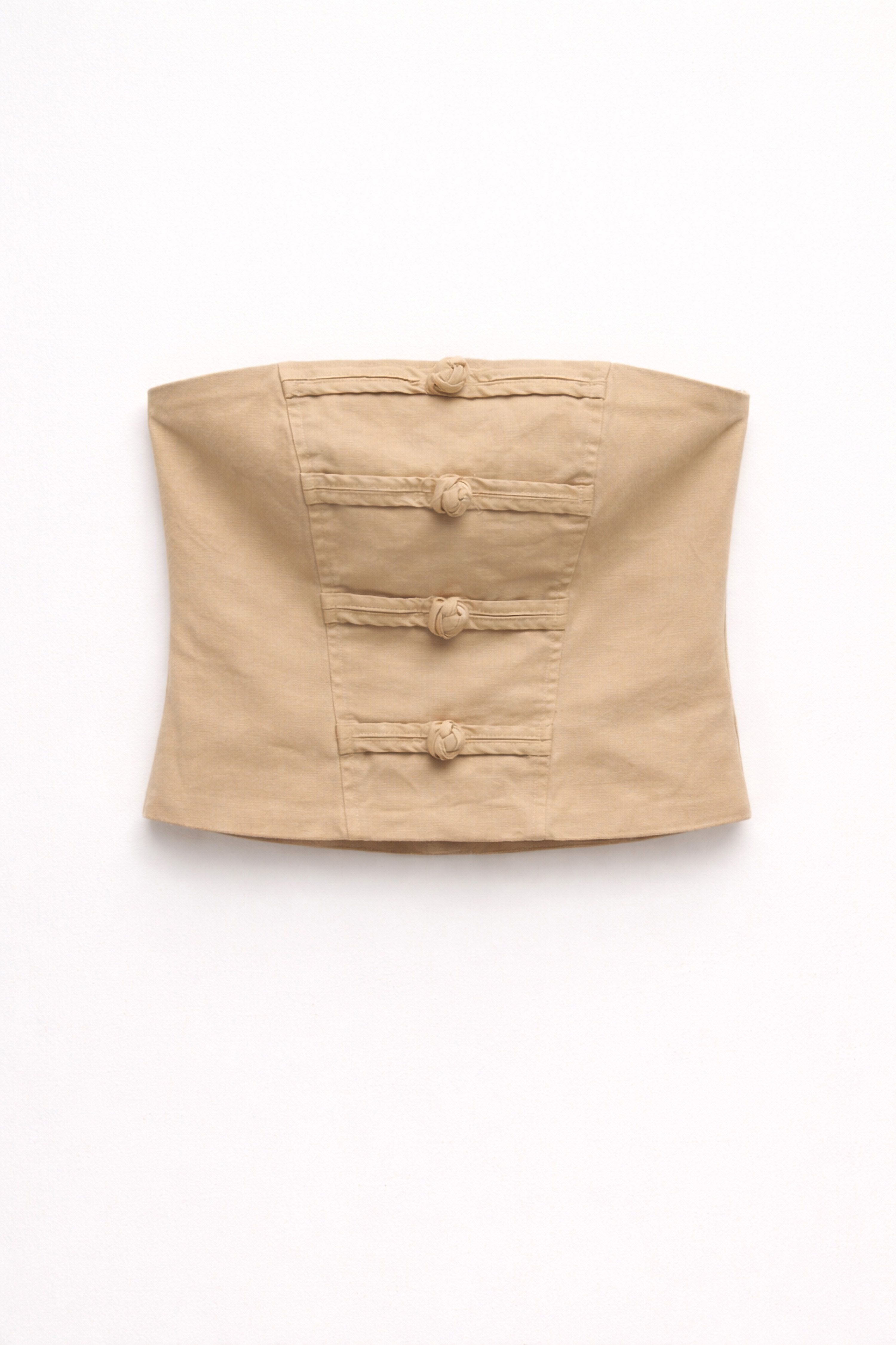 Sleeveless cargo vest with V-neck. Decorative patch pockets with flap on the chest. Cargo pockets applied to the front. Front closure with decorative knots. Regular fit, available in size S, M, L.