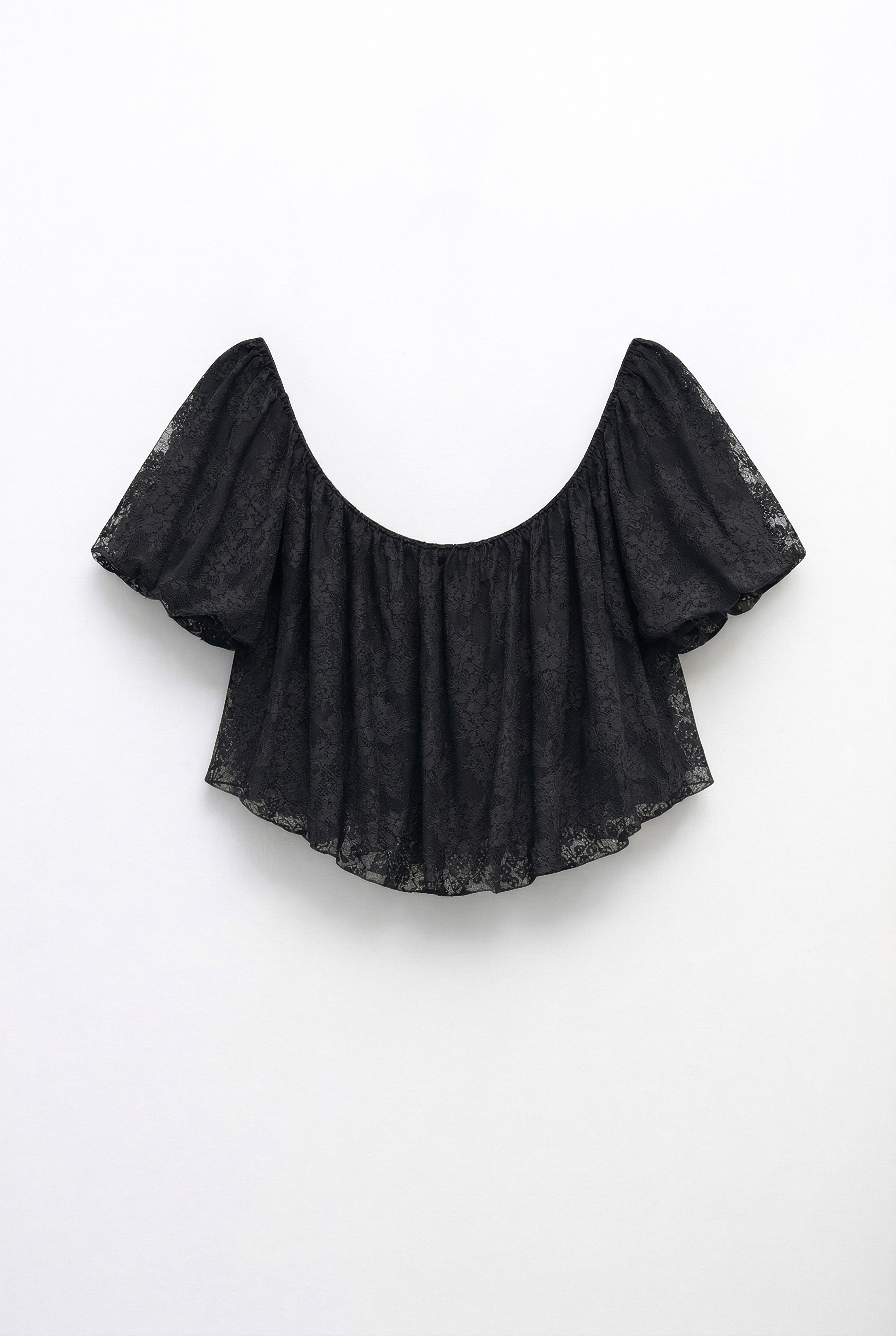 Wide neckline. Long sleeves with high buttoned cuffs.