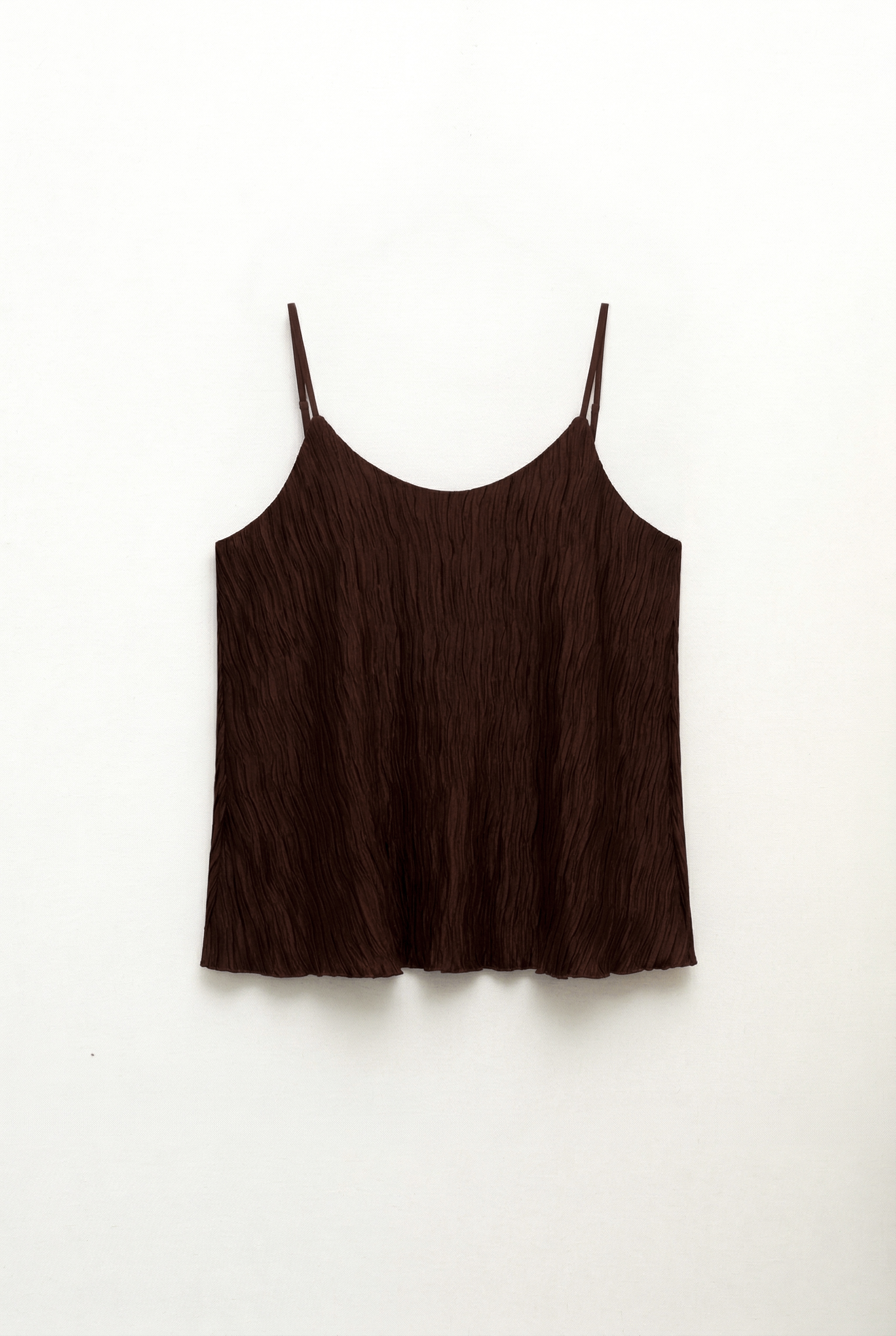 Top in fabric with pleated workmanship.
